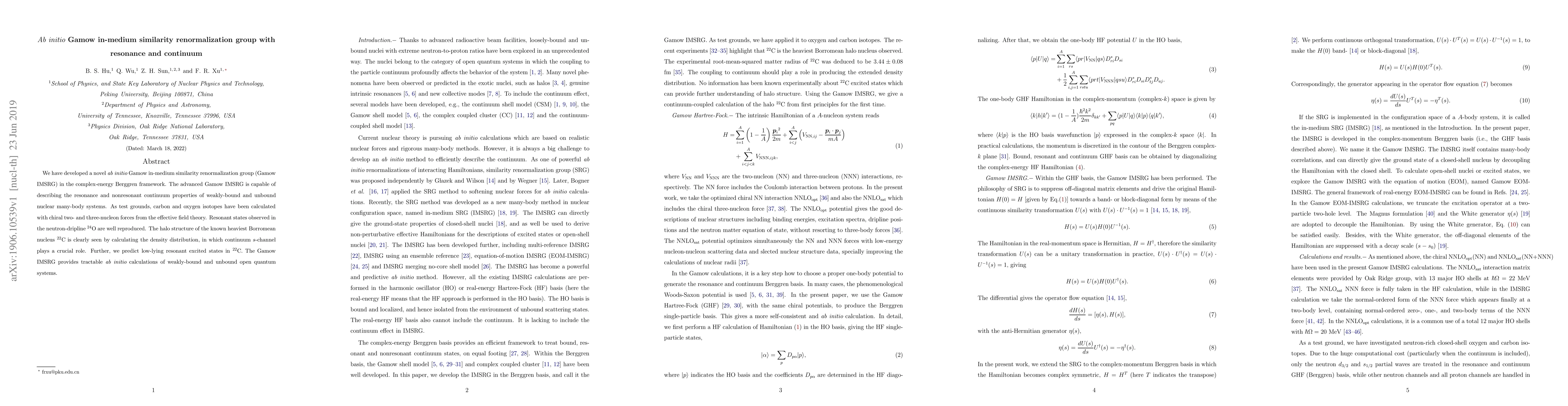 This paper introduces an advanced ab initio Gamow in-medium similarity renormalization group (Gamow IMSRG) method for describing the resonance and continuum properties of weakly bound nuclear systems. It successfully reproduces resonant states in 24O and reveals the halo structure in 22C, predicting low-lying resonant excited states in the latter.