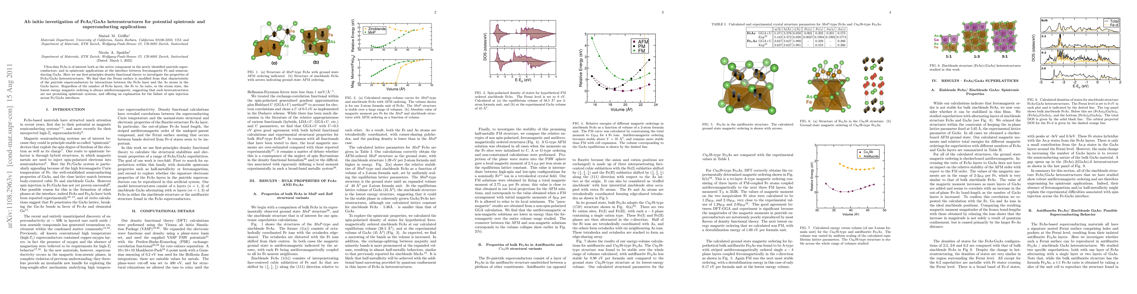This study uses first-principles density functional theory to explore FeAs/GaAs heterostructures, revealing that the Fermi surface is modified by interactions between FeAs and GaAs layers. Despite various configurations, the heterostructures exhibit antiferromagnetic ordering, indicating they are not suitable for spintronic applications.