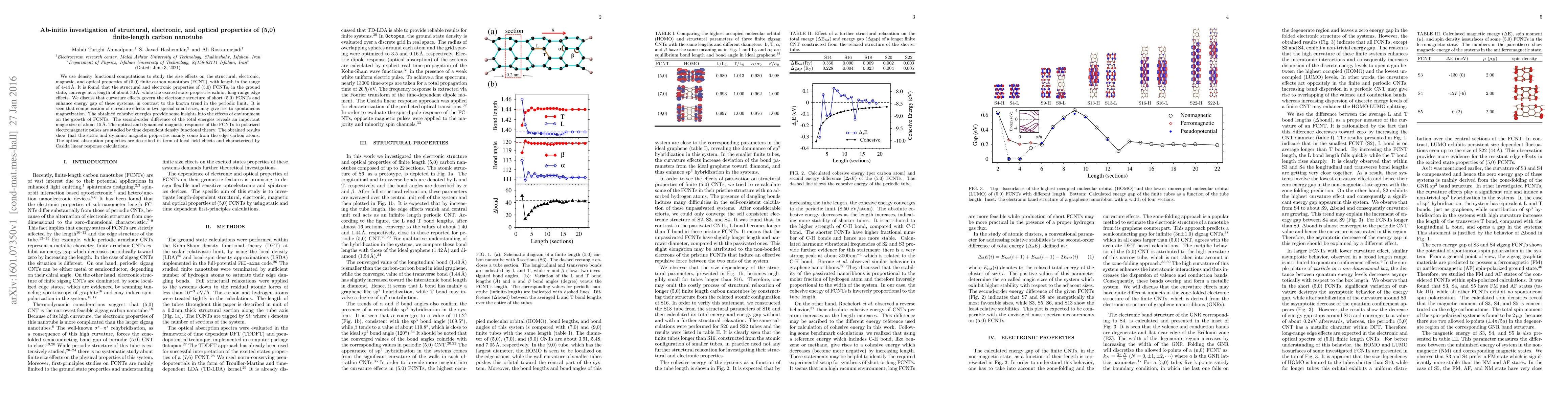Researchers investigated the properties of 5,0 finite-length carbon nanotubes using density functional computations, finding that curvature effects influence electronic structure and can lead to spontaneous magnetization in certain sizes.