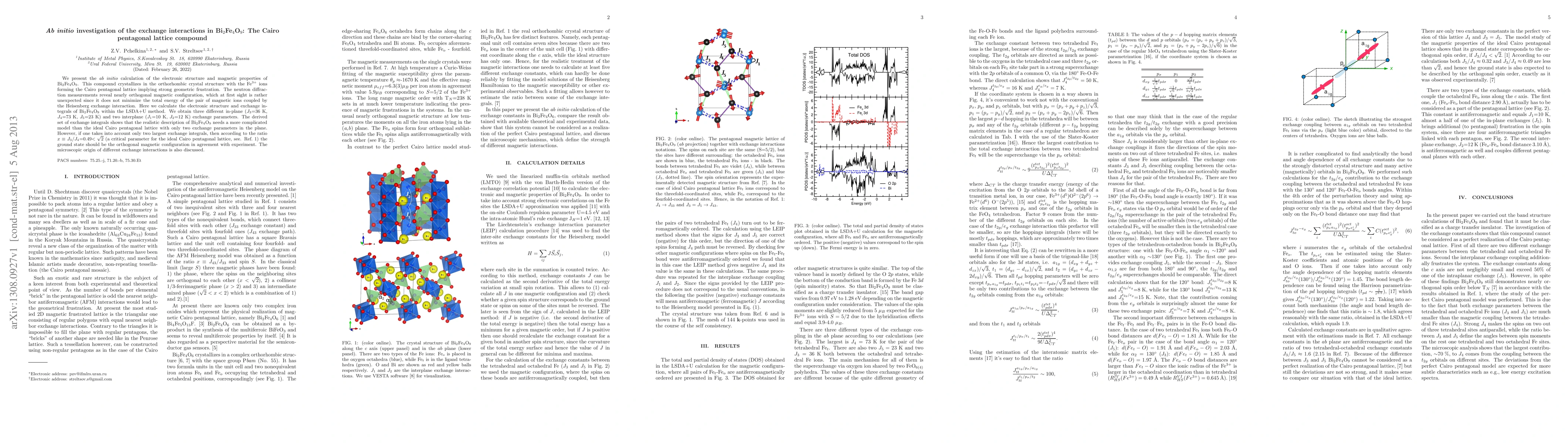 This paper presents \textit{ab initio} calculations of the electronic structure and magnetic properties of Bi$_2$Fe$_4$O$_9$, revealing complex exchange interactions and a nearly orthogonal magnetic configuration. The study identifies multiple in-plane and interplane exchange parameters, suggesting a more intricate model than the simple Cairo pentagonal lattice.