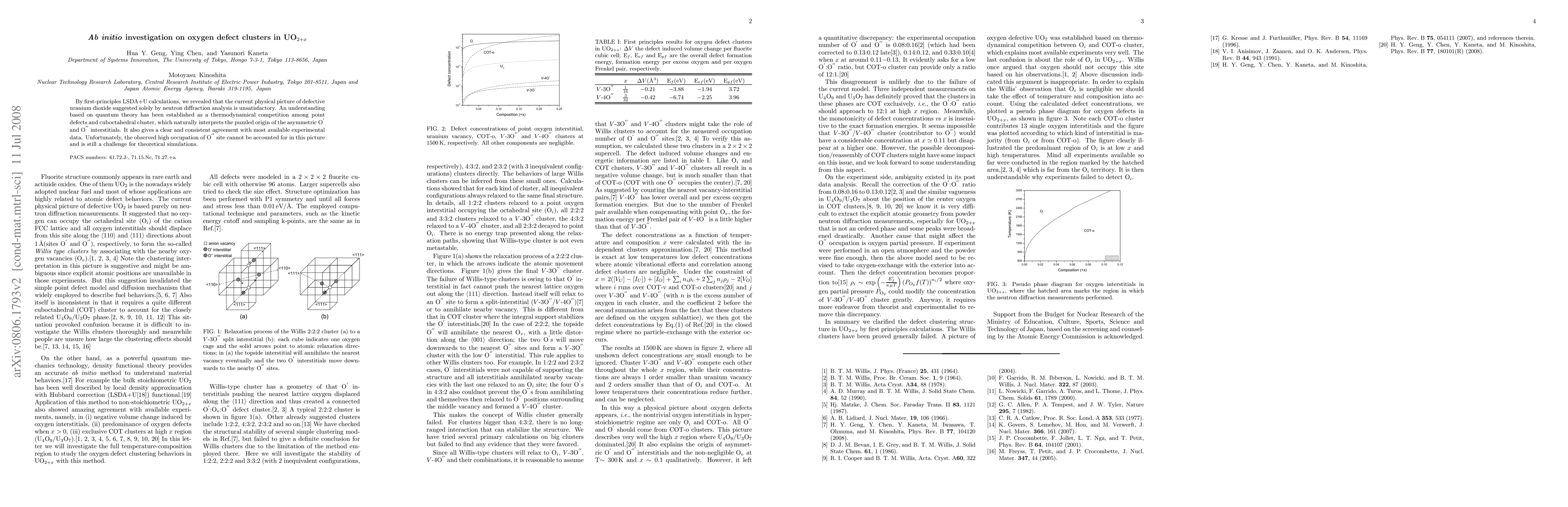 This study uses first-principles calculations to show that a quantum-theoretical model better explains oxygen defect clusters in UO2+x than previous neutron diffraction models. However, the model cannot fully account for the high occupation of a particular interstitial site, leaving this aspect unresolved.