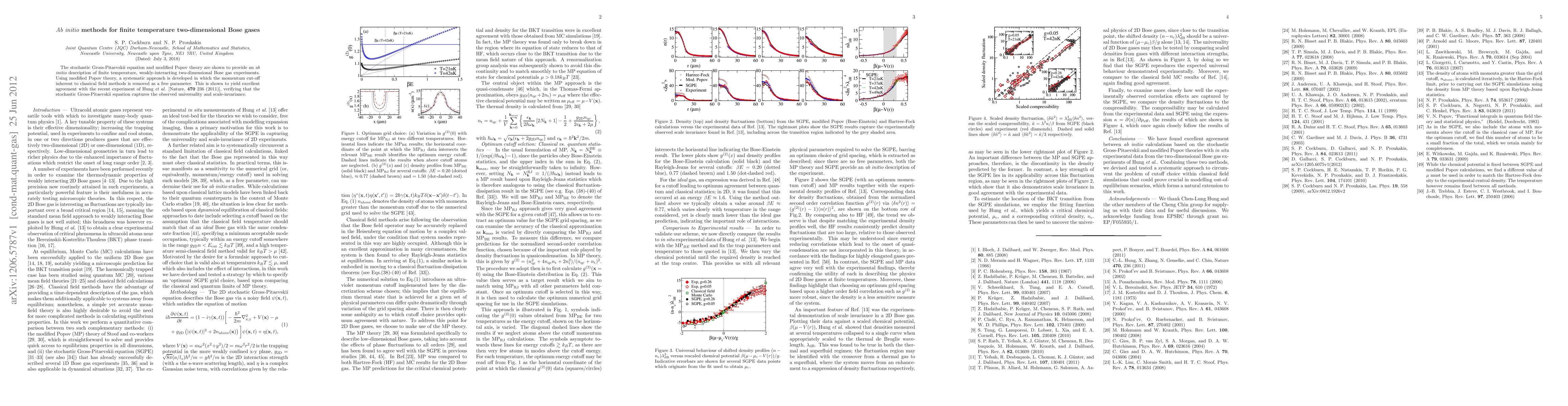 This paper develops ab initio methods using the stochastic Gross-Pitaevskii equation and modified Popov theory to describe finite temperature, weakly-interacting two-dimensional Bose gases. The approach removes the momentum cut-off as a free parameter, yielding excellent agreement with recent experimental results.