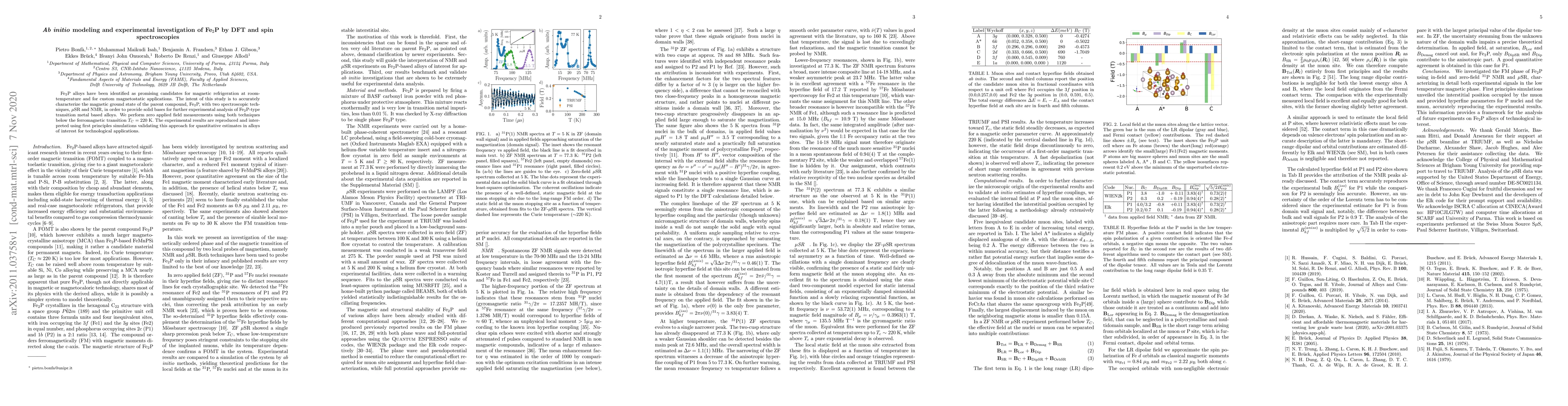 This study characterizes the magnetic ground state of Fe$_2$P using $\mu$SR and NMR spectroscopies, aiming to provide a foundation for further analysis of Fe$_2$P-based alloys. Experimental results are validated with first principles simulations, confirming the suitability of this approach for technological applications in magnetic refrigeration and magnetostatics.