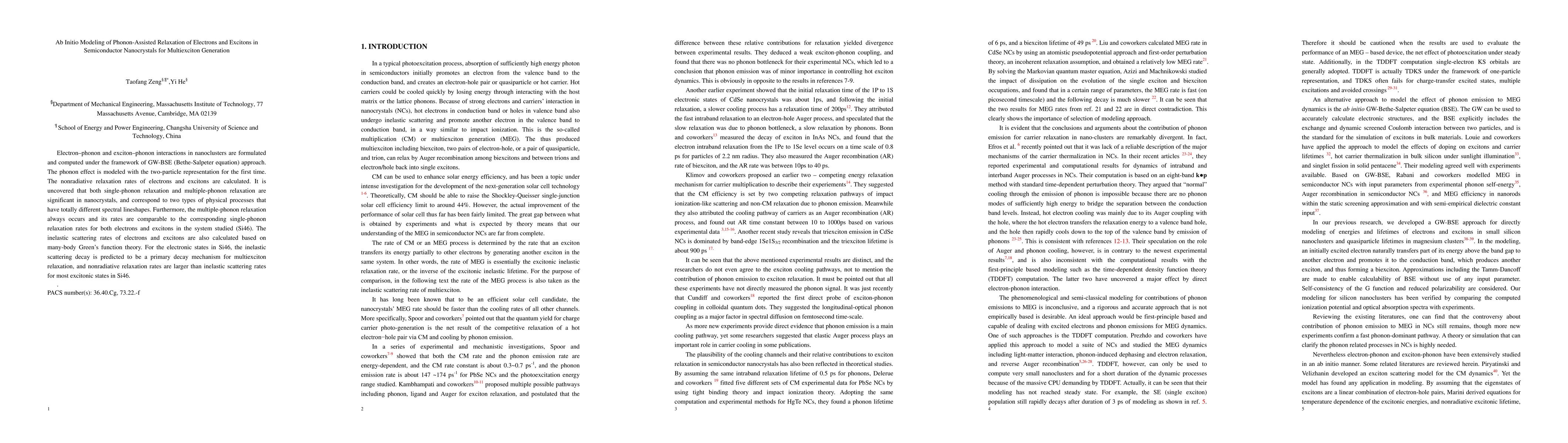 This paper models phonon-assisted electron and exciton relaxation in semiconductor nanocrystals using GW-BSE and introduces a two-particle representation for phonons. It finds that both single- and multiple-phonon relaxations significantly contribute to nonradiative decay, with multiple-phonon processes being comparably fast, and predicts inelastic scattering as a primary decay mechanism for multiexciton relaxation.