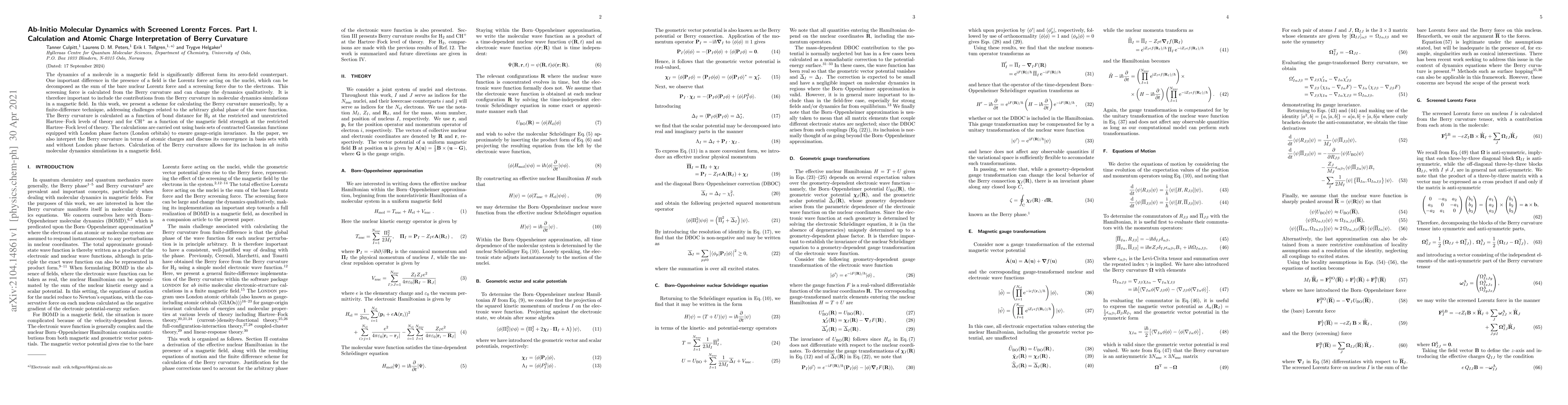 This paper presents a method for numerically calculating the Berry curvature using finite-difference techniques, addressing phase issues, and applies it to H$_2$ and CH$^+$. It interprets the Berry curvature in terms of atomic charges and discusses its convergence, enabling its inclusion in ab-initio molecular dynamics simulations in magnetic fields.