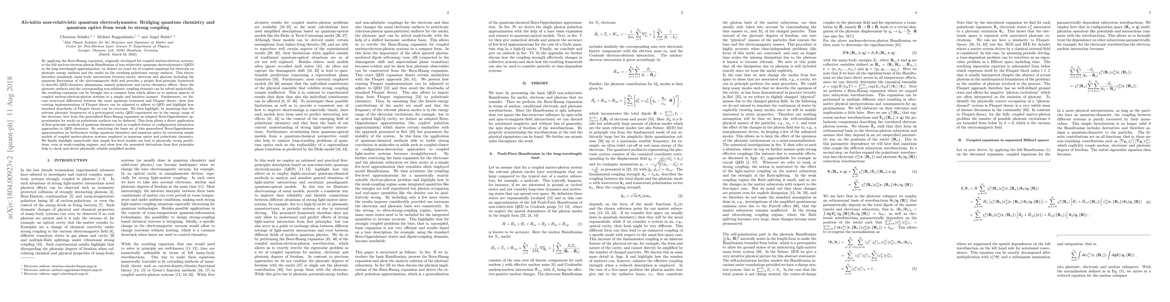 This paper develops an ab-initio framework based on the Born-Huang expansion for non-relativistic quantum electrodynamics, bridging quantum chemistry and quantum optics. The approach provides a first-principles method to describe QED-chemistry phenomena and allows for the application of quantum chemistry methods to analyze coupled nucleus-electron-photon systems.