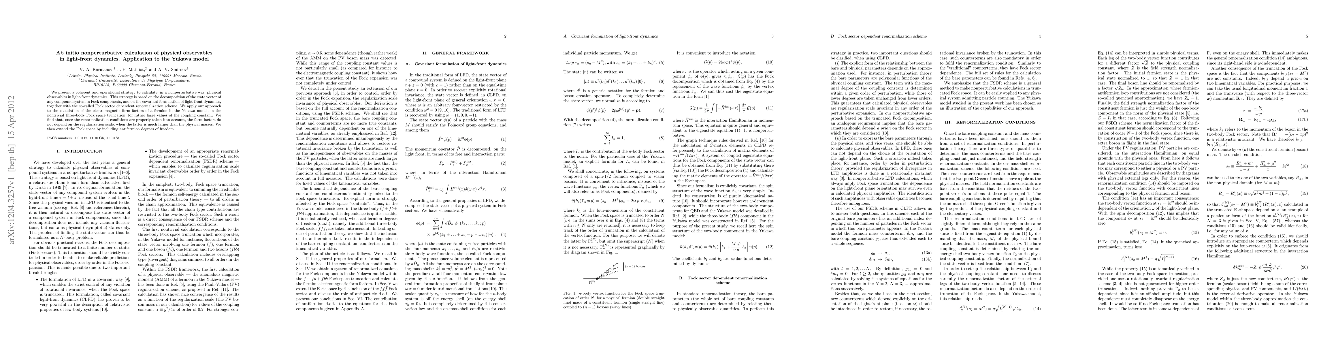 This paper introduces a nonperturbative method for calculating physical observables in light-front dynamics, applied to the Yukawa model. The method decomposes the state vector into Fock components and employs renormalization, yielding form factors that are scale-independent for large coupling constants.