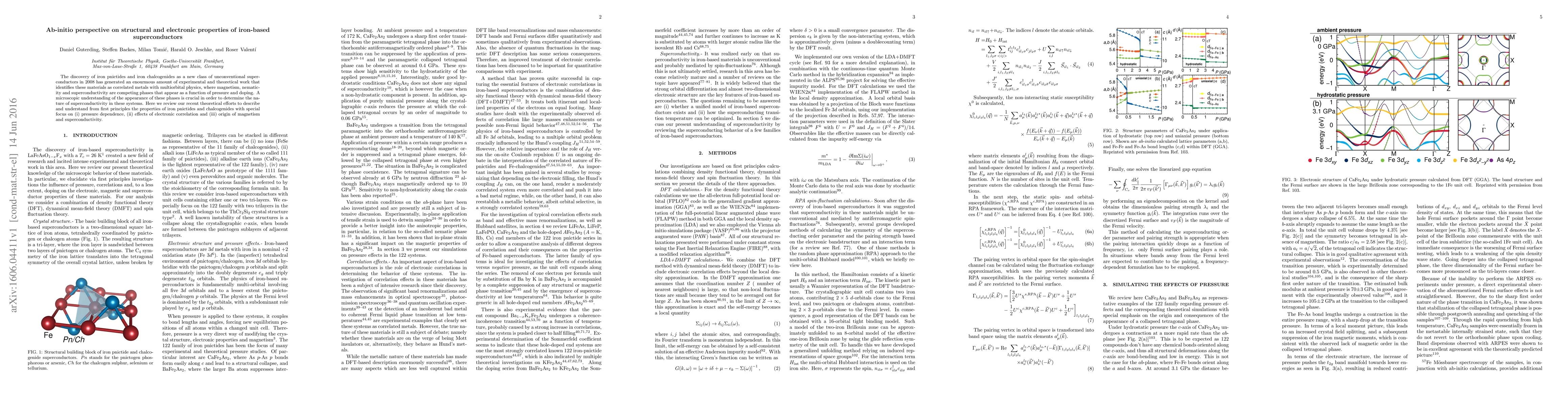 This paper reviews theoretical efforts to understand the structural and electronic properties of iron-based superconductors from first principles, focusing on pressure effects, electronic correlation, and the origins of magnetism and superconductivity. The study aims to clarify the nature of superconductivity in these correlated metals.