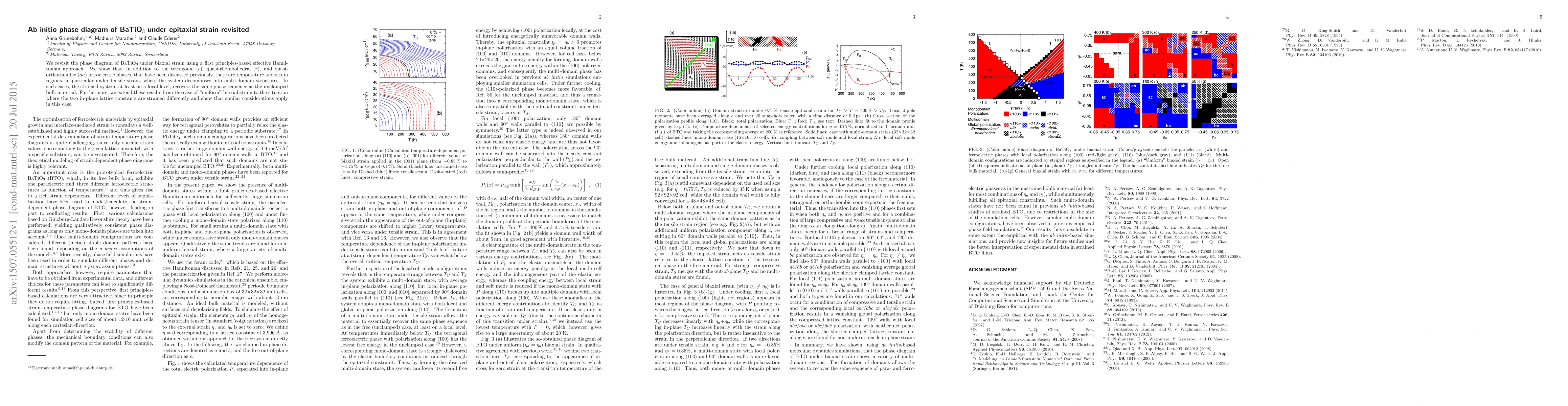 We revisit the phase diagram of BaTiO$_3$ under biaxial strain using a first principles-based effective Hamiltonian approach. We show that, in addition to the tetragonal ($c$), quasi-rhombohedral ($r$), and quasi-orthorhombic ($aa$) ferroelectric phases, that have been discussed previously, there are temperature and strain regions, in particular under tensile strain, where the system decomposes into multi-domain structures. In such cases, the strained system, at least on a local level, recovers the same phase sequence as the unclamped bulk material. Furthermore, we extend these results from the case of "uniform" biaxial strain to the situation where the two in-plane lattice constants are strained differently and show that similar considerations apply in this case.
