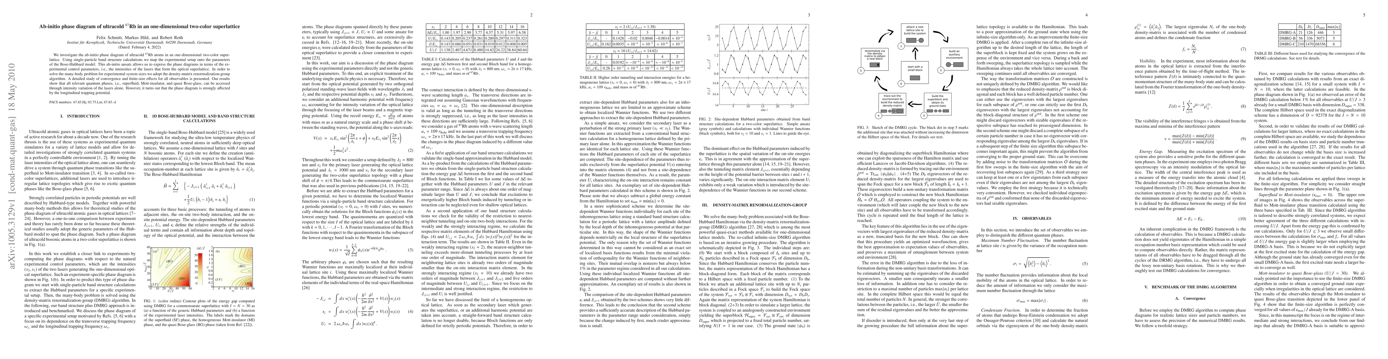 This paper presents an ab-initio phase diagram for ultracold 87-Rb atoms in a one-dimensional two-color superlattice, mapping experimental parameters onto the Bose-Hubbard model using single-particle calculations. The density-matrix renormalization-group algorithm reveals accessible quantum phases via laser intensity variation, though the phase diagram is significantly influenced by the longitudinal trapping potential.
