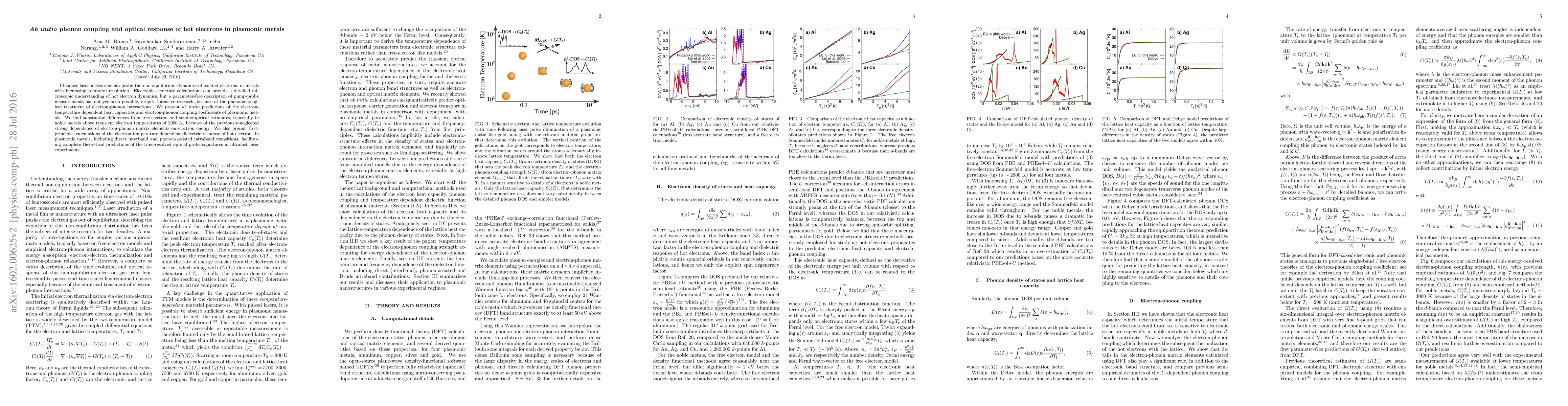 This paper presents ab initio calculations predicting the electron-temperature dependent heat capacities and electron-phonon coupling in plasmonic metals, revealing significant discrepancies from conventional models at high electron temperatures. It also provides first-principles dielectric response models, enabling theoretical predictions of ultrafast laser experiment signatures.