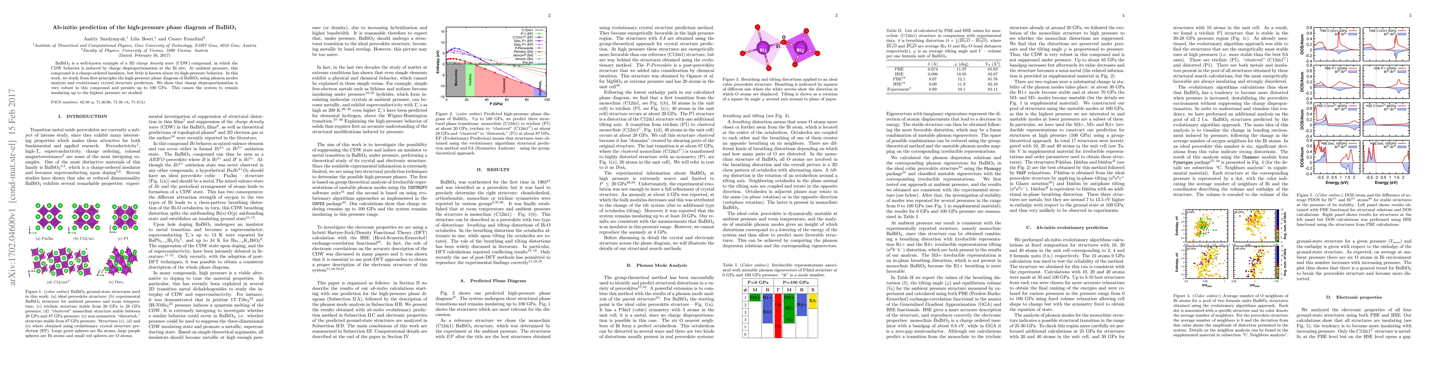 This study uses first-principles calculations to determine the high-pressure phase diagram of BaBiO3, revealing that charge disproportionation remains stable up to 100 GPa, maintaining the compound's insulating behavior at extreme pressures.