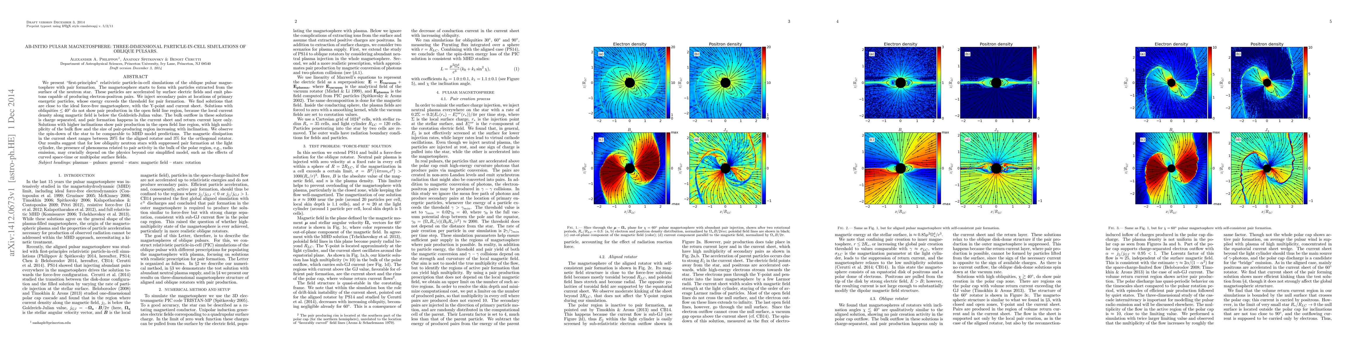 This paper presents relativistic particle-in-cell simulations of oblique pulsar magnetospheres, revealing that pair formation and magnetic dissipation depend on the pulsar's obliquity, with higher inclinations leading to more significant pair production and magnetic dissipation in the current sheet.