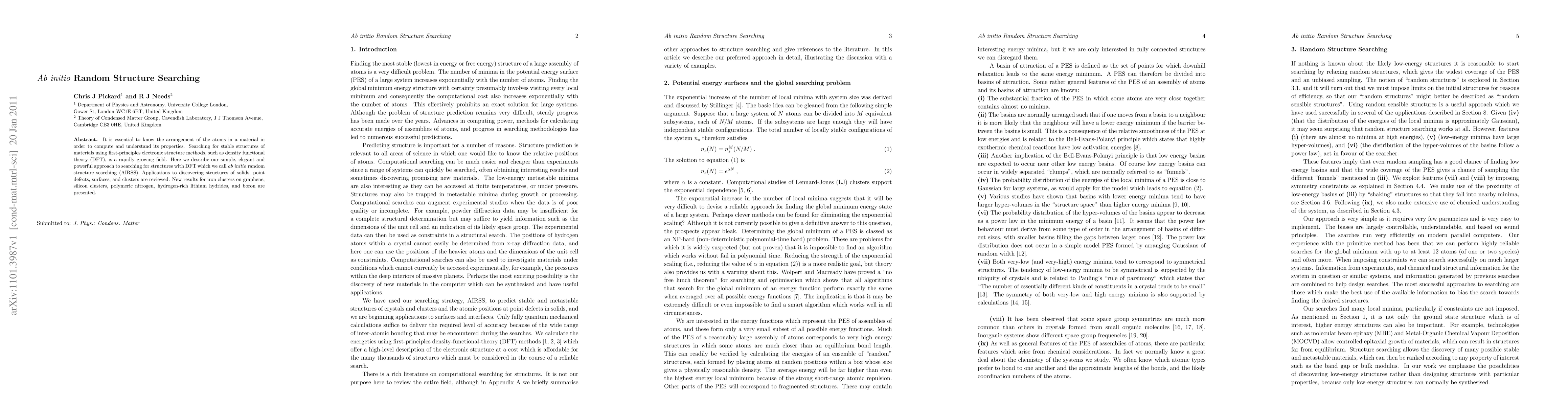 Researchers have developed a new method to search for materials' atomic structures using density functional theory, enabling discoveries of solids, defects, surfaces, and clusters with unprecedented accuracy. The approach, called ab initio random structure searching, has been applied to various materials, revealing new properties and potential applications.