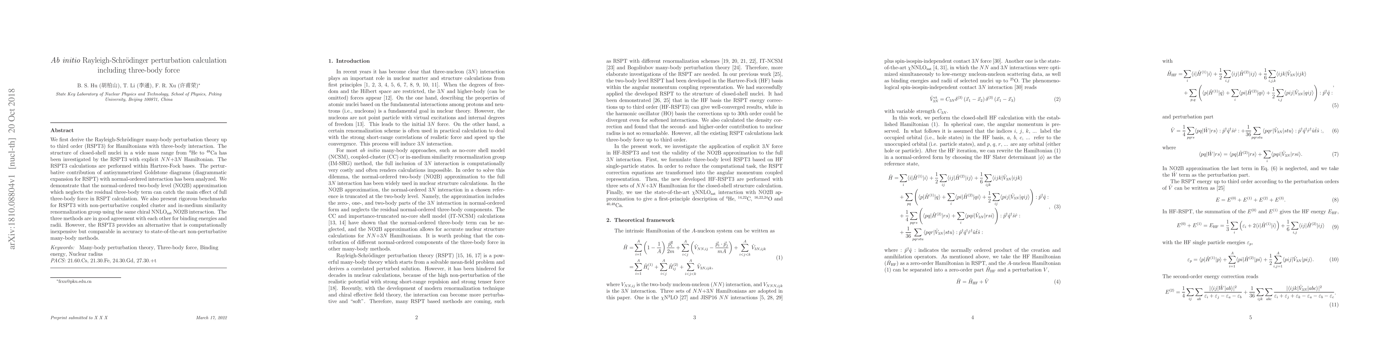 We first derive the Rayleigh-Schr\"odinger many-body perturbation theory up to third order (RSPT3) for Hamiltonians with three-body interaction. The structure of closed-shell nuclei in a wide mass range from 4He to 48Ca has been investigated by the RSPT3 with explicit NN+3N Hamiltonian. The RSPT3 calculations are performed within Hartree-Fock bases. The perturbative contribution of antisymmetrized Goldstone diagrams (diagrammatic expansion for RSPT) with normal-ordered interaction has been analyzed. We demonstrate that the normal-ordered two-body level (NO2B) approximation which neglects the residual three-body term can catch the main effect of full three-body force in RSPT calculation. We also present rigorous benchmarks for RSPT3 with non-perturbative coupled cluster and in-medium similarity renormalization group using the same chiral NNLOsat NO2B interaction. The three methods are in good agreement with each other for binding energies and radii. However, the RSPT3 provides an alternative that is computationally inexpensive but comparable in accuracy to state-of-the-art non-perturbative many-body methods.