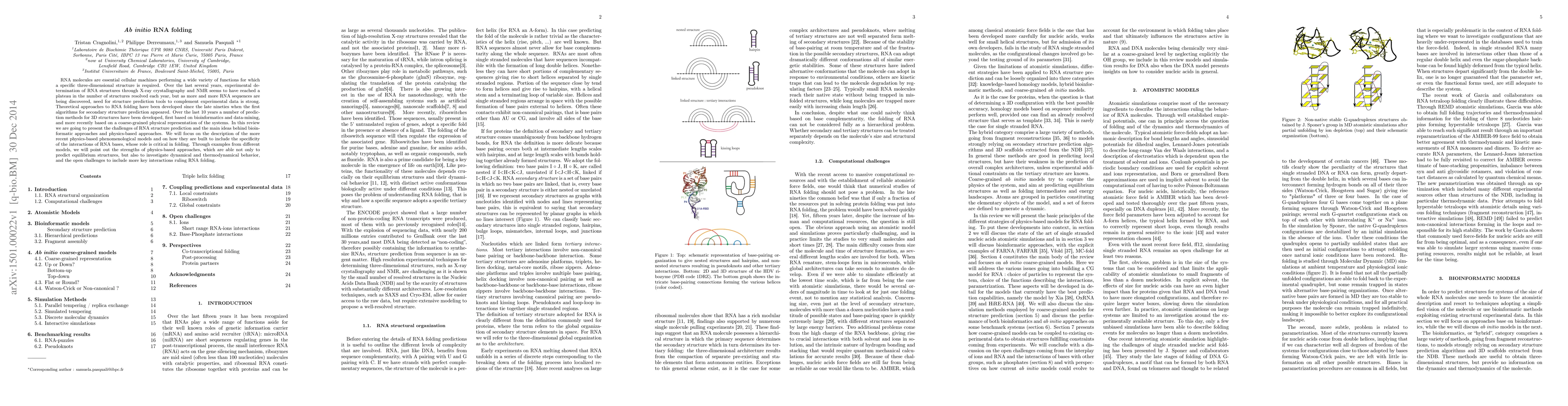 This paper reviews the challenges in predicting RNA three-dimensional structures and discusses both bioinformatics and physics-based approaches. It highlights the strengths of recent physics-based models in predicting equilibrium structures and investigating dynamics, while also noting the ongoing challenges in incorporating all critical interactions for RNA folding.