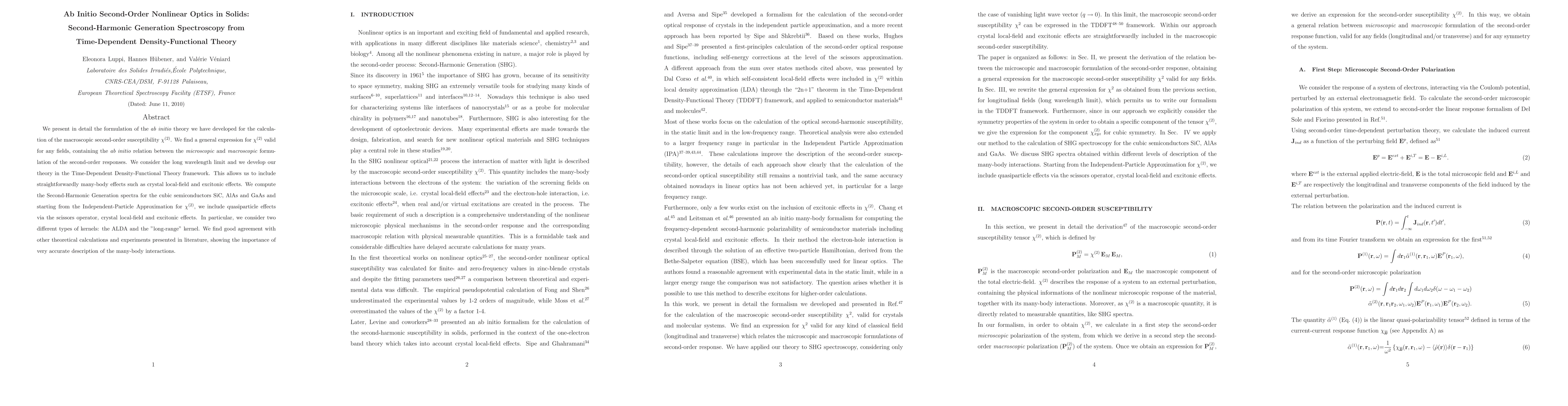 This paper develops an ab initio theory for calculating macroscopic second-order susceptibility $\chi^{(2)}$ using Time-Dependent Density-Functional Theory, and applies it to compute Second-Harmonic Generation spectra for SiC, AlAs, and GaAs, showing the significance of many-body effects in accurate predictions.