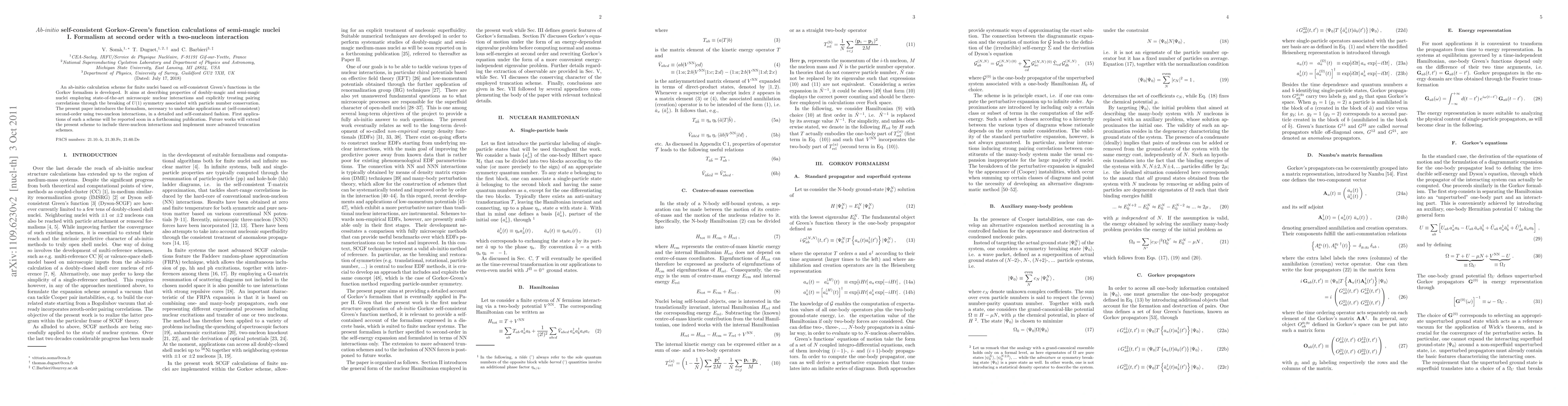 This paper develops an ab-initio calculation scheme for semi-magic nuclei using self-consistent Green's functions in the Gorkov formalism, focusing on second-order applications with two-nucleon interactions. It introduces the formalism to treat pairing correlations and plans to extend the method to include three-nucleon interactions in future work.