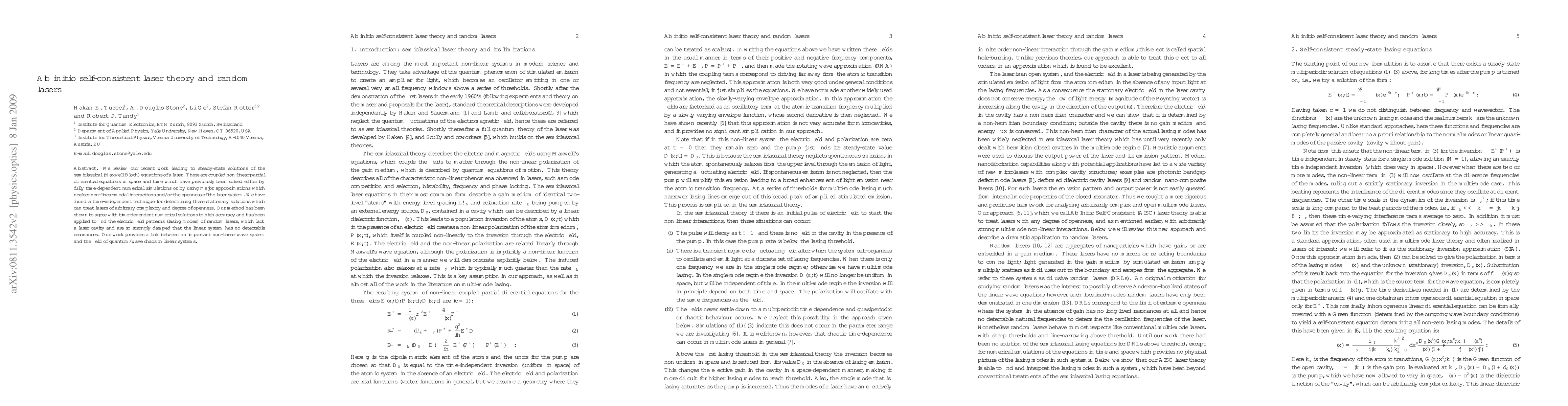 We review our recent work leading to steady-state solutions of the semiclassical (Maxwell-Bloch) equations of a laser. These are coupled non-linear partial differential equations in space and time which have previously been solved either by fully time-dependent numerical simulations or by using major approximations which neglect non-linear modal interactions and/or the openness of the laser system. We have found a time-independent technique for determining these stationary solutions which can treat lasers of arbitrary complexity and degree of openness. Our method has been shown to agree with time-dependent numerical solutions to high accuracy and has been applied to find the electric field patterns (lasing modes) of random lasers, which lack a laser cavity and are so strongly damped that the linear system has no detectable resonances. Our work provides a link between an important non-linear wave system and the field of quantum/wave chaos in linear systems.
