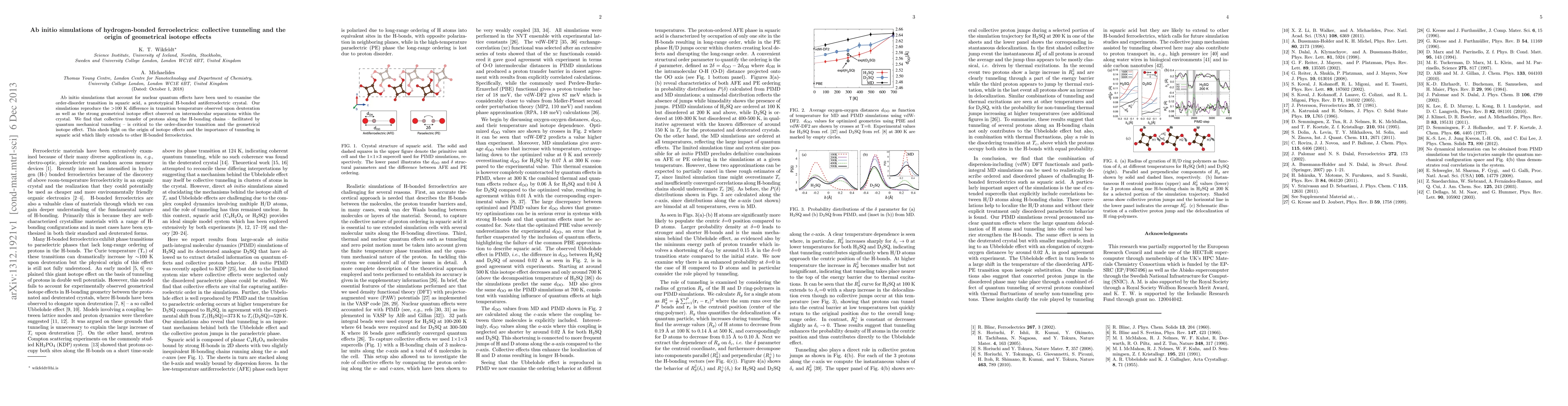 Ab initio simulations reveal that collective proton tunneling along hydrogen-bonding chains in squaric acid is crucial for the order-disorder transition and explains the observed geometrical isotope effects. This insight highlights the significance of quantum mechanical tunneling in hydrogen-bonded ferroelectrics.