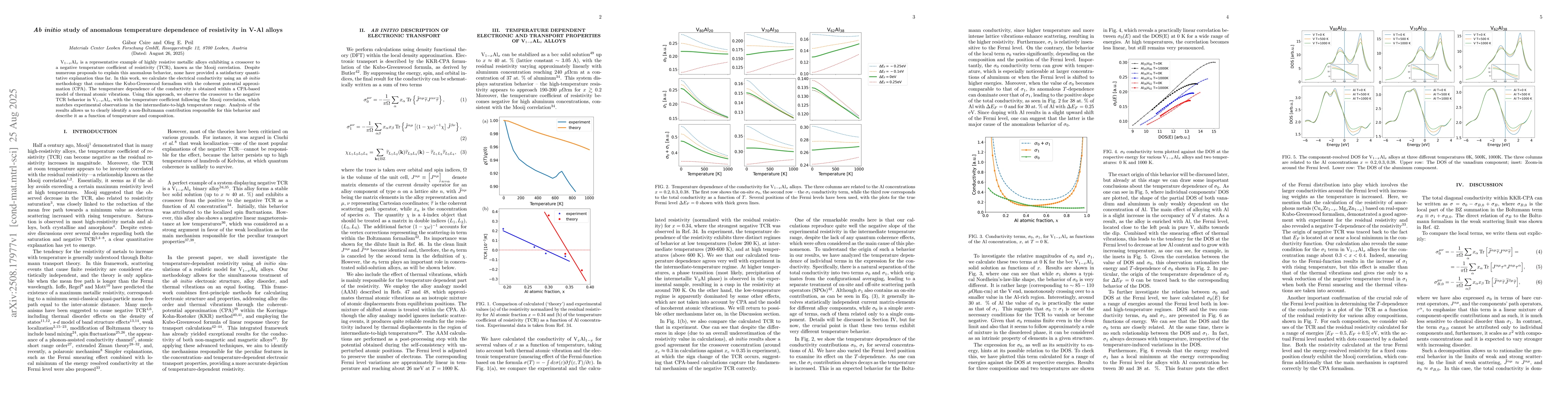 V$_{1-x}$Al$_x$ is a representative example of highly resistive metallic alloys exhibiting a crossover to a negative temperature coefficient of resistivity (TCR), known as the Mooij correlation. Despite numerous proposals to explain this anomalous behavior,none have provided a satisfactory quantitative explanation thus far. In this work, we calculate the electrical conductivity using an ab initio methodology that combines the Kubo-Greenwood formalism with the coherent potential approximation (CPA). The temperature dependence of the conductivity is obtained within a CPA-based model of thermal atomic vibrations. Using this approach, we observe the crossover to the negative TCR behavior in V$_{1-x}$Al$_x$, with the temperature coefficient following the Mooij correlation, which matches experimental observations in the intermediate-to-high temperature range.Analysis of the results allows us to clearly identify a non-Boltzmann contribution responsible for this behavior and describe it as a function of temperature and composition.