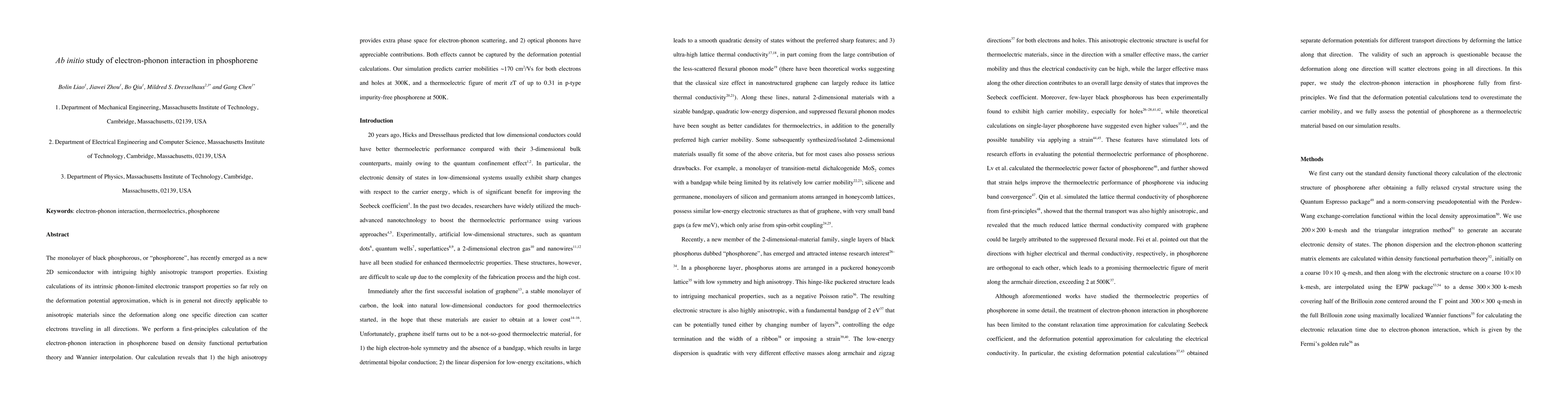 The study employs first-principles calculations to analyze electron-phonon interactions in phosphorene, revealing high anisotropy enhances scattering phase space and optical phonons significantly contribute—findings not captured by traditional deformation potential approaches.
