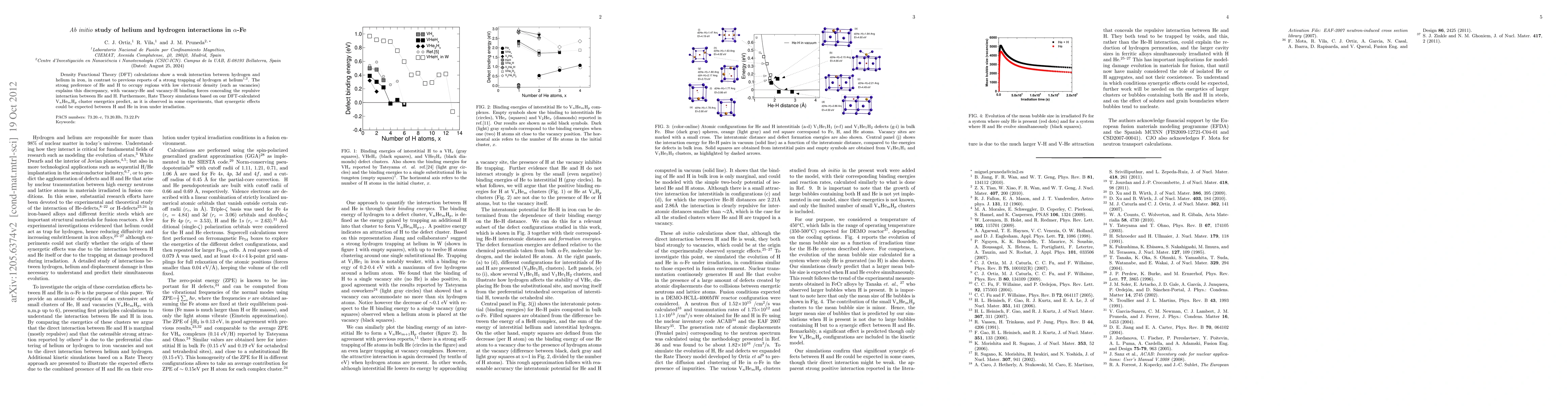 Ab initio DFT calculations reveal weak He-H interaction in Fe, contradicting prior reports. Synergistic effects between H and He in Fe under irradiation are predicted and supported by experimental observations.