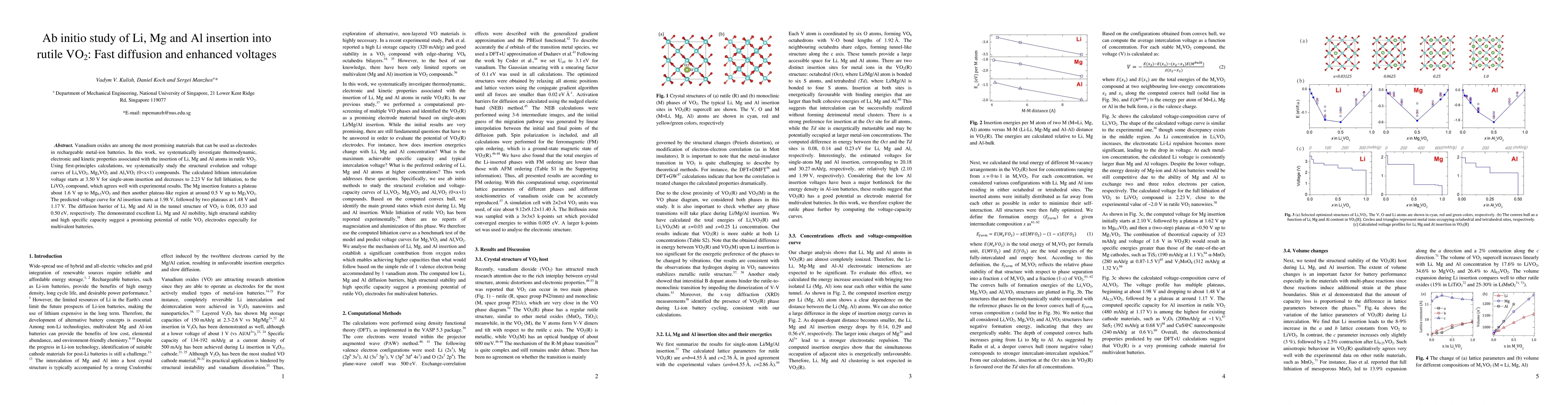 This study uses first-principles calculations to analyze the insertion of Li, Mg, and Al into rutile VO2, revealing fast diffusion and enhanced voltage plateaus for each, with promising potential for multivalent rechargeable batteries.