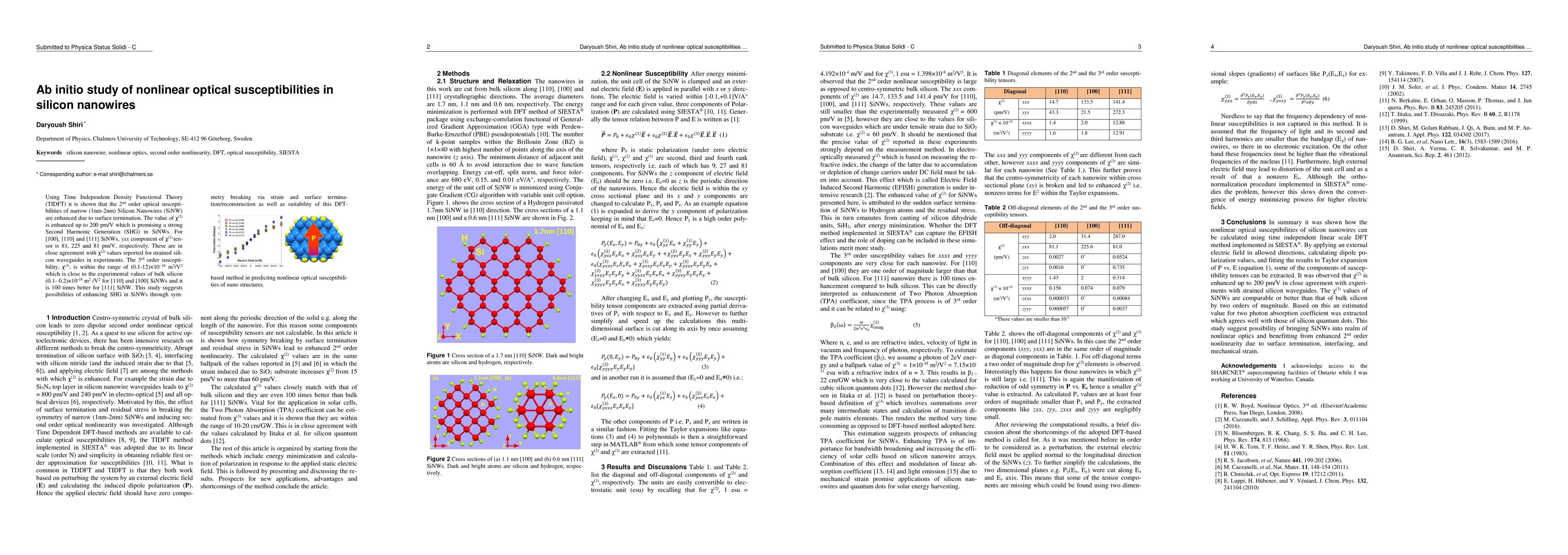 This research contributes to the understanding of nonlinear optical properties of silicon nanowires, which can be beneficial for applications in nonlinear optics.