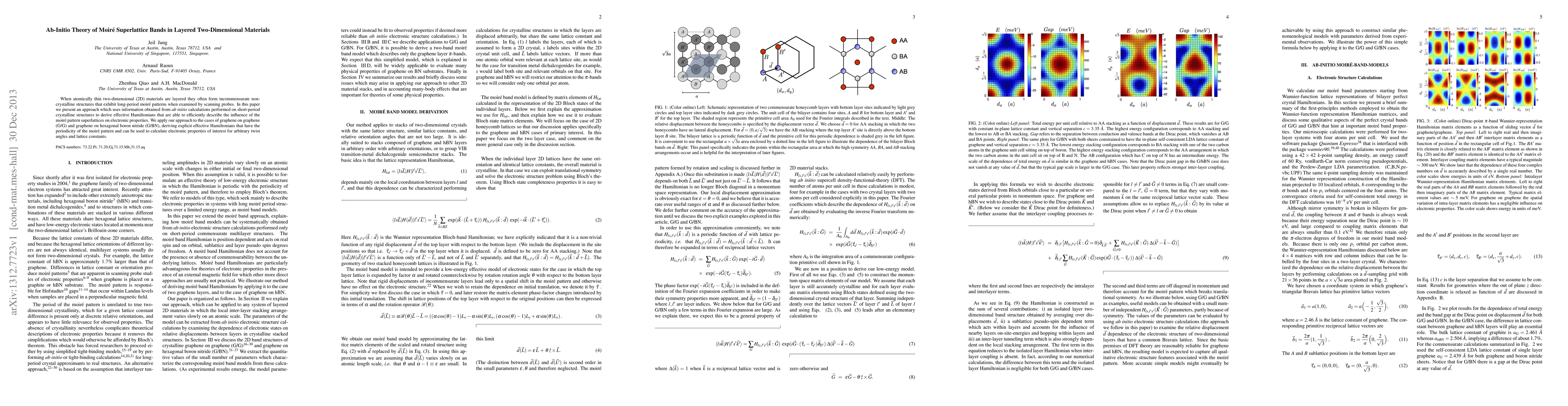 This paper develops an ab-initio theoretical approach to derive effective Hamiltonians for moiré superlattices in layered 2D materials, enabling efficient description of their electronic properties. It applies this method to graphene/graphene and graphene/hexagonal boron nitride systems.