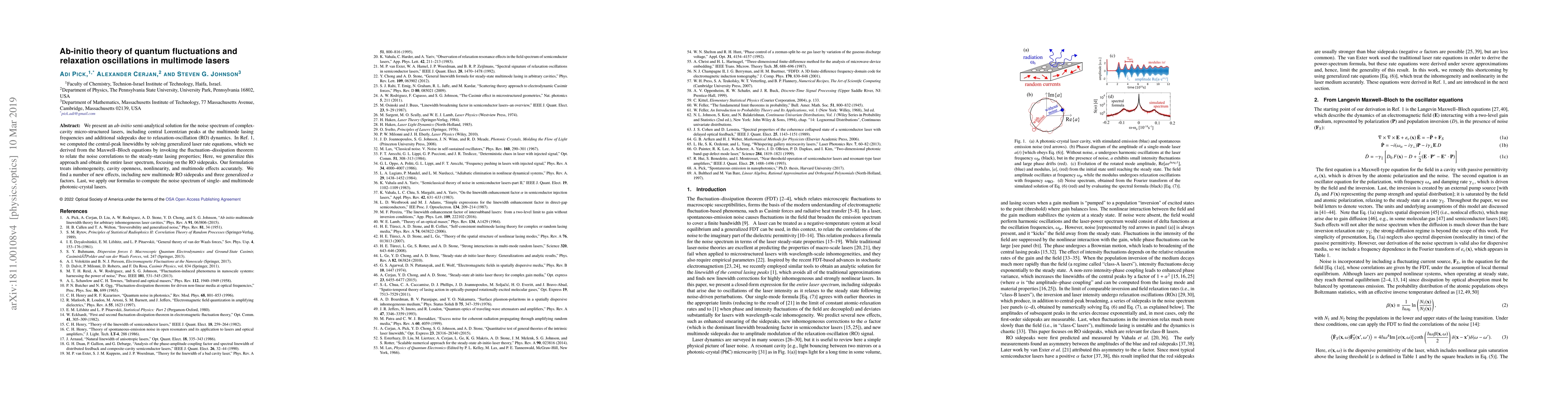 This paper presents an ab-initio semi-analytical solution for the noise spectrum of multimode micro-structured lasers, including Lorentzian peaks and sidepeaks due to relaxation-oscillation dynamics. The study generalizes previous work to accurately treat inhomogeneity, cavity openness, nonlinearity, and multimode effects, revealing new multimode RO sidepeaks and generalized α factors.