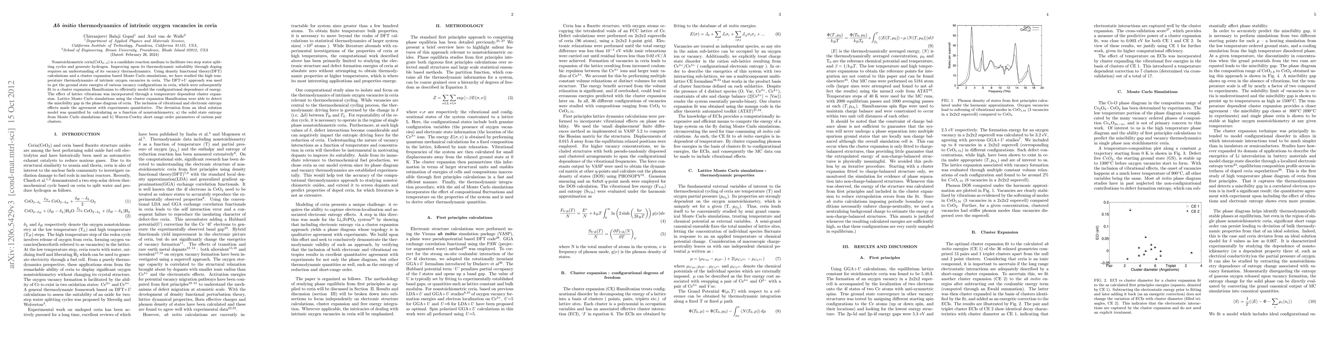 Cluster expansion Hamiltonian-based lattice Monte Carlo simulations were employed to quantitatively compute the high-temperature thermodynamics of oxygen vacancies in ceria.