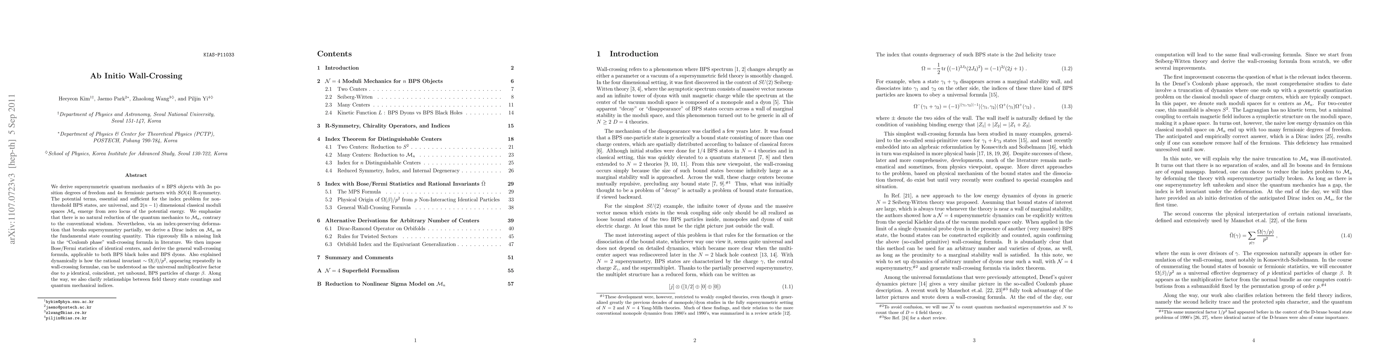 We derive supersymmetric quantum mechanics of n BPS objects with 3n position degrees of freedom and 4n fermionic partners with SO(4) R-symmetry. The potential terms, essential and sufficient for the index problem for non-threshold BPS states, are universal, and 2(n-1) dimensional classical moduli spaces M_n emerge from zero locus of the potential energy. We emphasize that there is no natural reduction of the quantum mechanics to M_n, contrary to the conventional wisdom. Nevertheless, via an index-preserving deformation that breaks supersymmetry partially, we derive a Dirac index on M_n as the fundamental state counting quantity. This rigorously fills a missing link in the "Coulomb phase" wall-crossing formula in literature. We then impose Bose/Fermi statistics of identical centers, and derive the general wall-crossing formula, applicable to both BPS black holes and BPS dyons. Also explained dynamically is how the rational invariant ~\Omega(\beta)/p^2, appearing repeatedly in wall-crossing formulae, can be understood as the universal multiplicative factor due to p identical, coincident, yet unbound, BPS particles of charge \beta. Along the way, we also clarify relationships between field theory state countings and quantum mechanical indices.