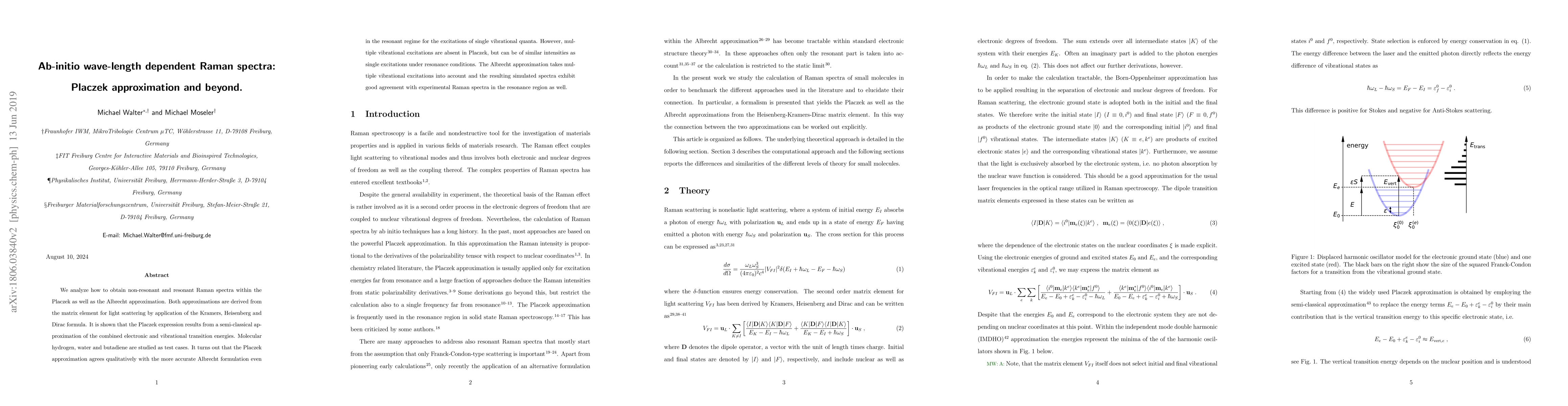 Researchers developed approximations for Raman spectra that accurately predict single and multiple vibrational excitation intensities in molecules like hydrogen, water, and butadiene. The Placzek approximation agrees with the Albrecht approximation in resonance conditions, while providing insight into semi-classical energy transitions.