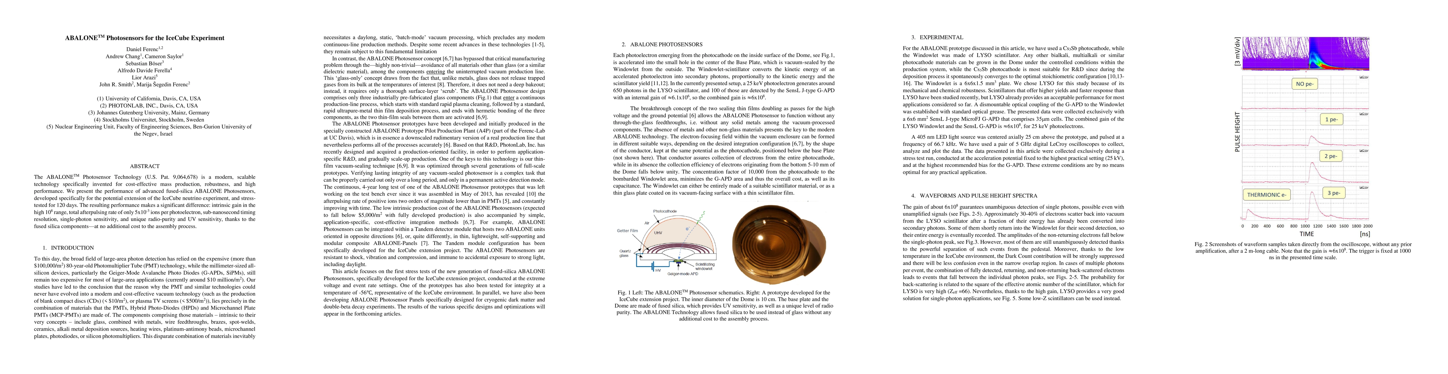 The ABALONE Photosensor Technology (U.S. Pat. 9064678) is a modern, scalable technology specifically invented for cost effective mass production, robustness, and high performance. We present the performance of advanced fused silica ABALONE Photosensors, developed specifically for the potential extension of the Ice Cube neutrino experiment, and stress tested for 120 days. The resulting performance makes a significant difference: intrinsic gain in the high 100 million range, total afterpulsing rate of only 0.005 ions per photoelectron, subnanosecond timing resolution, single photon sensitivity, and unique radiopurity and UV sensitivity, thanks to the fused silica components, at no additional cost to the assembly process.