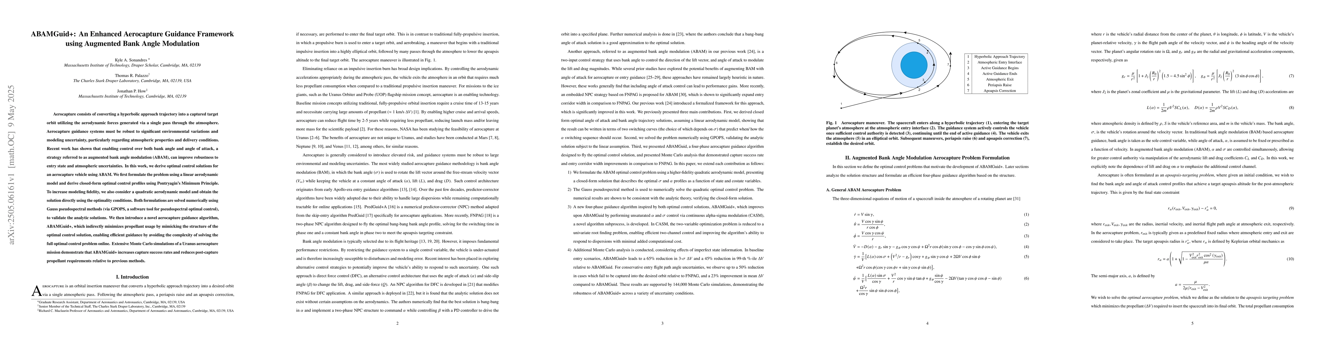 The research derives optimal control solutions for an aerocapture vehicle using augmented bank angle modulation (ABAM), formulated with linear and quadratic aerodynamic models. Solutions are obtained analytically and validated numerically using Gauss pseudospectral methods (GPOPS).