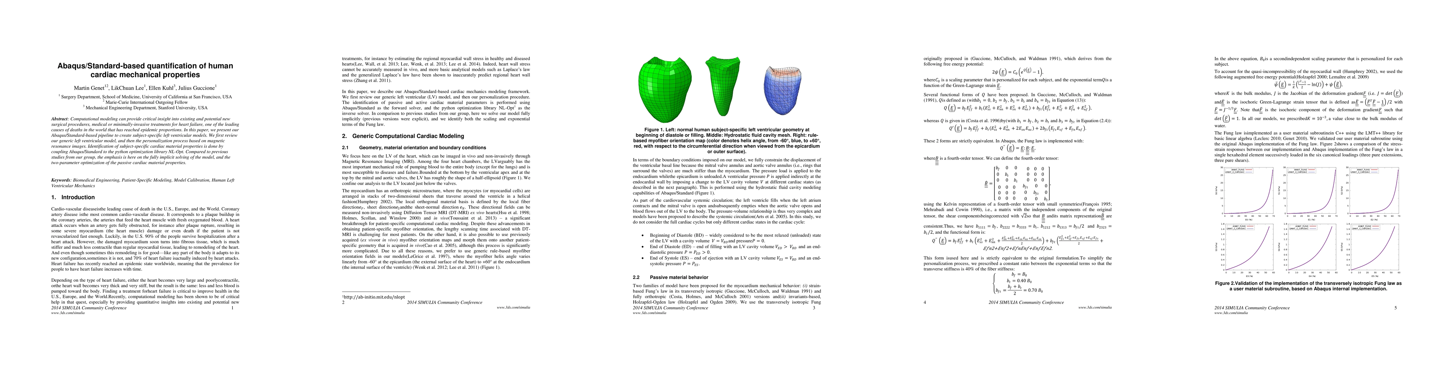Computational modeling can provide critical insight into existing and potential new surgical procedures, medical or minimally-invasive treatments for heart failure, one of the leading causes of deaths in the world that has reached epidemic proportions. In this paper, we present our Abaqus/Standard-based pipeline to create subject-specific left ventricular models. We first review our generic left ventricular model, and then the personalization process based on magnetic resonance images. Identification of subject-specific cardiac material properties is done by coupling Abaqus/Standard to the python optimization library NL-Opt. Compared to previous studies from our group, the emphasis is here on the fully implicit solving of the model, and the two-parameter optimization of the passive cardiac material properties.