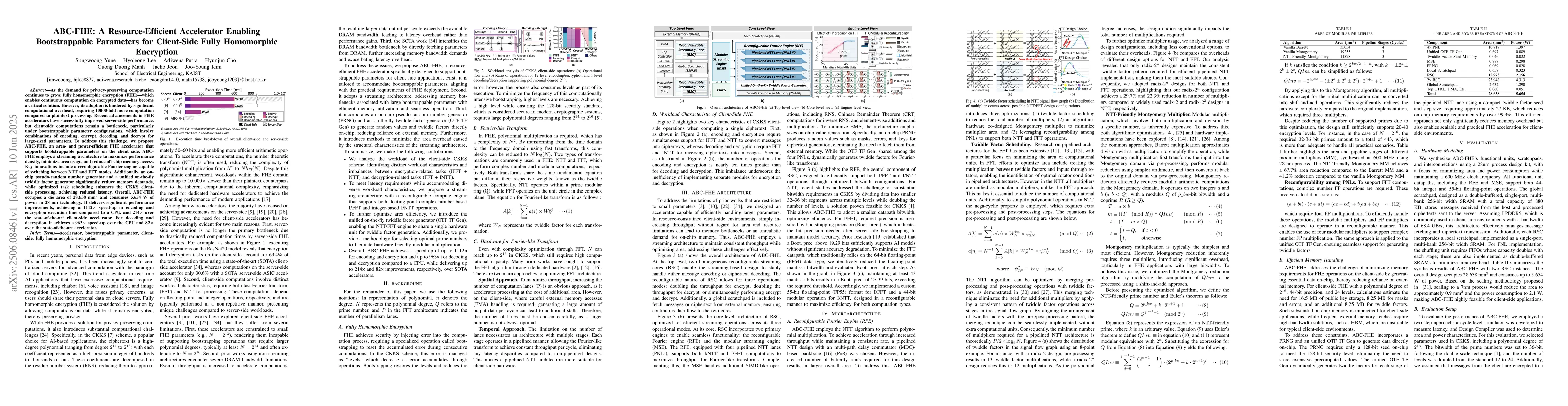 The main technical contribution of this work is the design and implementation of ABC-FHE, a resource-efficient FHE accelerator that supports bootstrappable parameters on the client side, utilizing a streaming architecture, reconfigurable Fourier engine, on-chip PRNG, and optimized task scheduling.