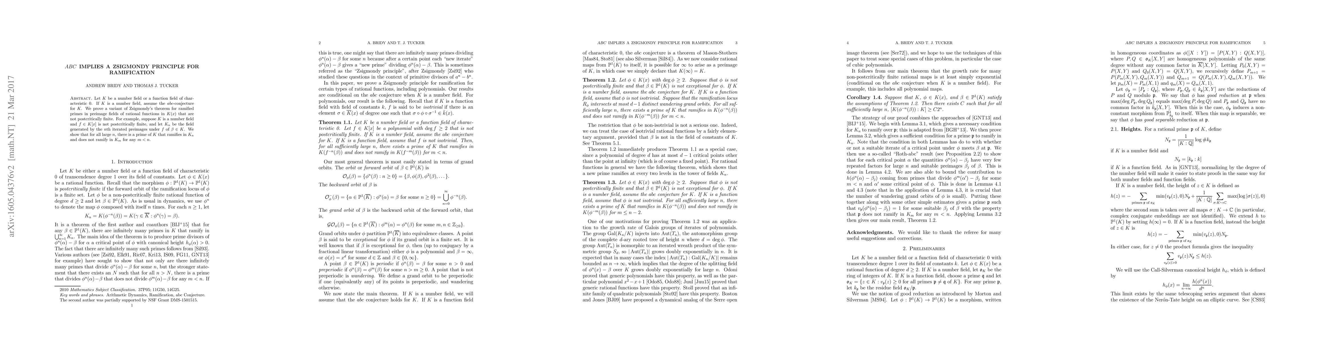 Researchers prove a variant of Zsigmondy's theorem for ramified primes in preimage fields of non-postcritically finite rational functions, showing such primes always ramify at some point as the iteration count increases.