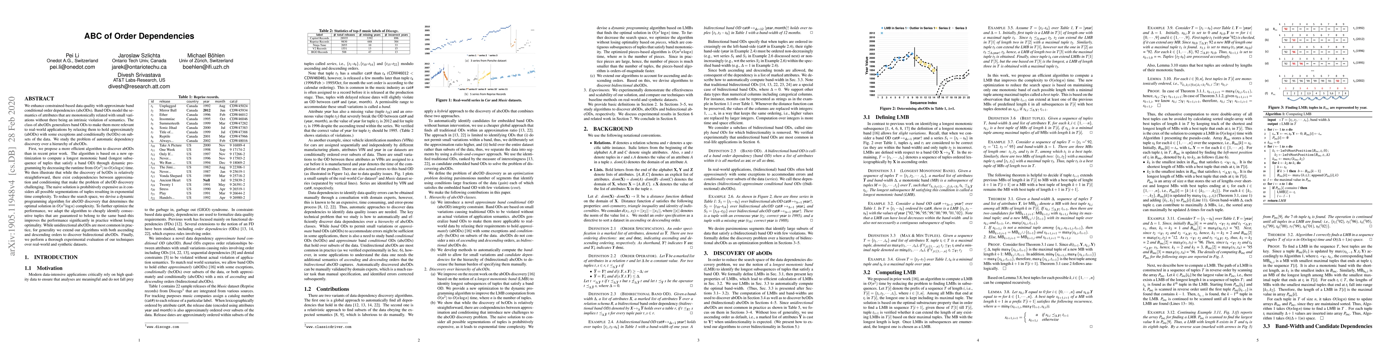 We enhance constrained-based data quality with approximate band conditional order dependencies (abcODs). Band ODs model the semantics of attributes that are monotonically related with small variations without there being an intrinsic violation of semantics. The class of abcODs generalizes band ODs to make them more relevant to real-world applications by relaxing them to hold approximately (abODs) with some exceptions and conditionally (bcODs) on subsets of the data. We study the problem of automatic dependency discovery over a hierarchy of abcODs. First, we propose a more efficient algorithm to discover abODs than in recent prior work. The algorithm is based on a new optimization to compute a longest monotonic band (longest subsequence of tuples that satisfy a band OD) through dynamic programming by decreasing the runtime from O(n^2) to O(n \log n) time. We then illustrate that while the discovery of bcODs is relatively straightforward, there exist codependencies between approximation and conditioning that make the problem of abcOD discovery challenging. The naive solution is prohibitively expensive as it considers all possible segmentations of tuples resulting in exponential time complexity. To reduce the search space, we devise a dynamic programming algorithm for abcOD discovery that determines the optimal solution in O(n^3 \log n) complexity. To further optimize the performance, we adapt the algorithm to cheaply identify consecutive tuples that are guaranteed to belong to the same band--this improves the performance significantly in practice without losing optimality. While unidirectional abcODs are most common in practice, for generality we extend our algorithms with both ascending and descending orders to discover bidirectional abcODs. Finally, we perform a thorough experimental evaluation of our techniques over real-world and synthetic datasets.