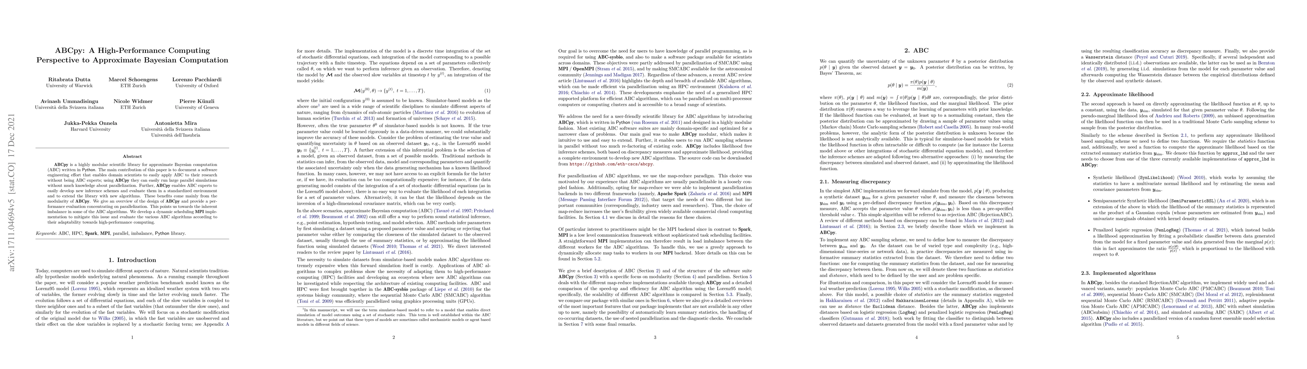 ABCpy is a highly modular scientific library for Approximate Bayesian Computation (ABC) written in Python. The main contribution of this paper is to document a software engineering effort that enables domain scientists to easily apply ABC to their research without being ABC experts; using ABCpy they can easily run large parallel simulations without much knowledge about parallelization. Further, ABCpy enables ABC experts to easily develop new inference schemes and evaluate them in a standardized environment and to extend the library with new algorithms. These benefits come mainly from the modularity of ABCpy. We give an overview of the design of ABCpy and provide a performance evaluation concentrating on parallelization. This points us towards the inherent imbalance in some of the ABC algorithms. We develop a dynamic scheduling MPI implementation to mitigate this issue and evaluate the various ABC algorithms according to their adaptability towards high-performance computing.