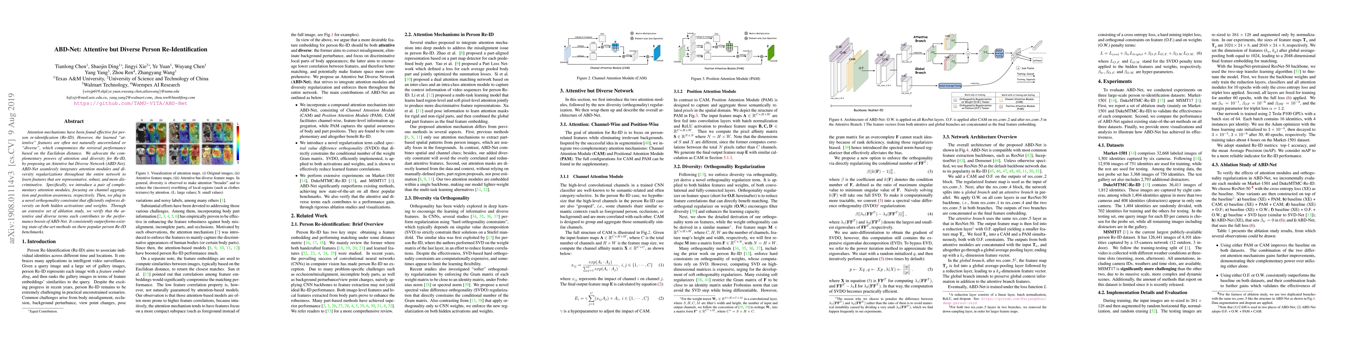ABD-Net integrates attention mechanisms with diversity regularization to enhance person re-identification performance by learning more discriminative and robust features. The proposed network achieves better results on benchmarks compared to existing methods.