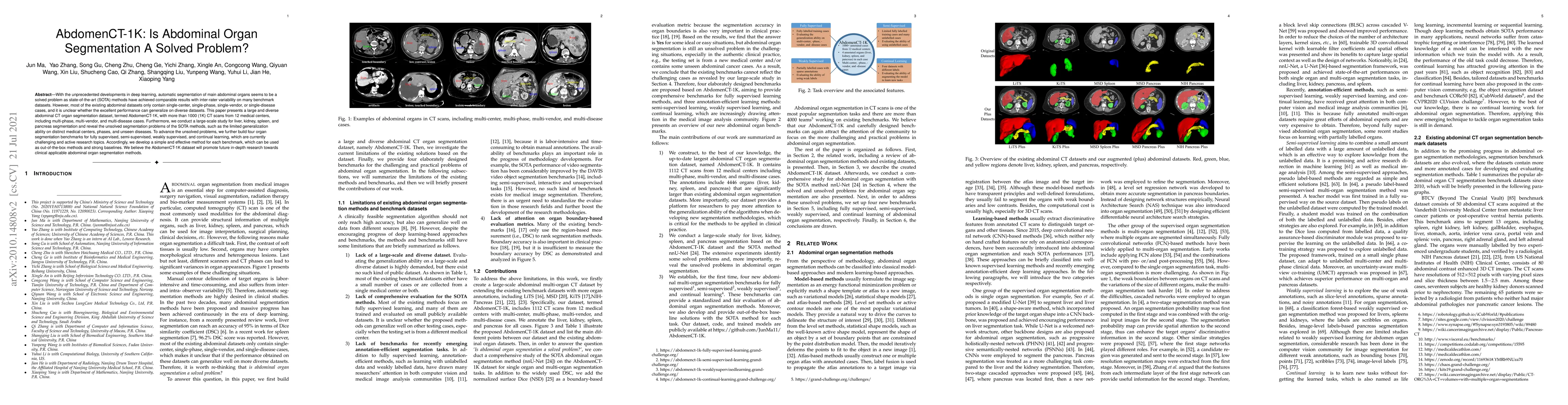 This paper introduces the AbdomenCT-1K dataset, a large and diverse collection of abdominal CT scans from multiple centers, to assess the generalization of state-of-the-art organ segmentation methods. It reveals significant unsolved problems in current methods, such as limited adaptability to different medical centers and diseases, and proposes new benchmarks and baselines to address these challenges.