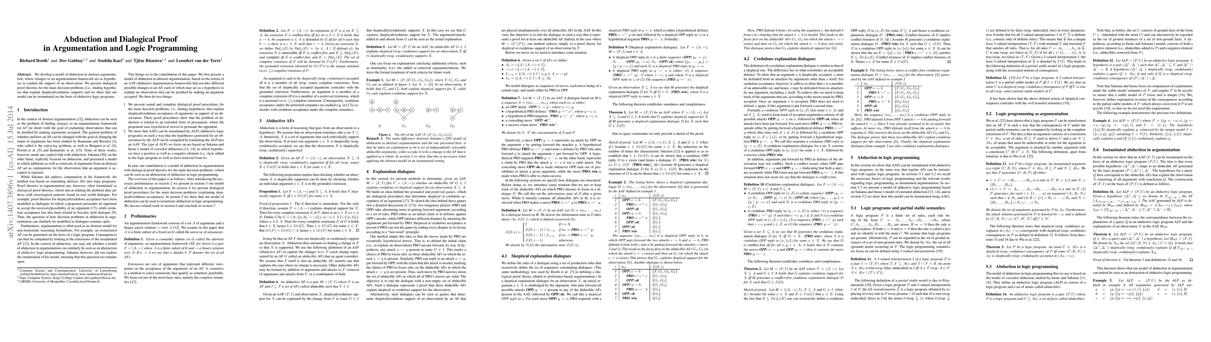 This paper proposes a model of abduction within abstract argumentation, where modifications to an argumentation framework serve as explanatory hypotheses. It introduces dialogical proof theories for key decision problems and demonstrates applicability through abductive logic programs.