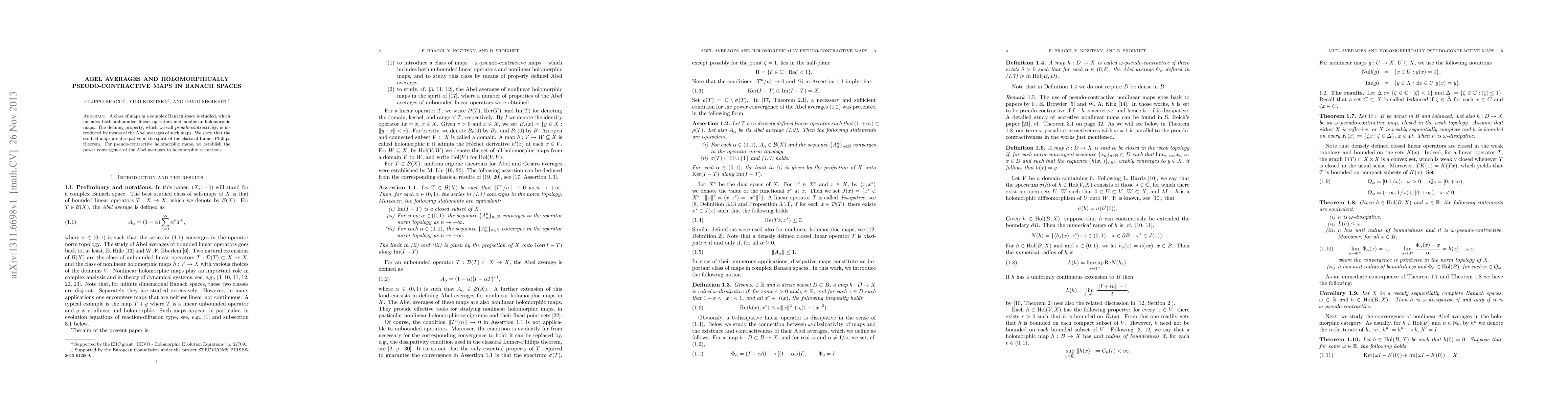 This paper explores a class of pseudo-contractive maps in complex Banach spaces, encompassing both linear operators and nonlinear holomorphic maps, defined via Abel averages. It demonstrates their dissipative nature akin to the Lumer-Phillips theorem and proves the power convergence of Abel averages for these maps to holomorphic retractions.
