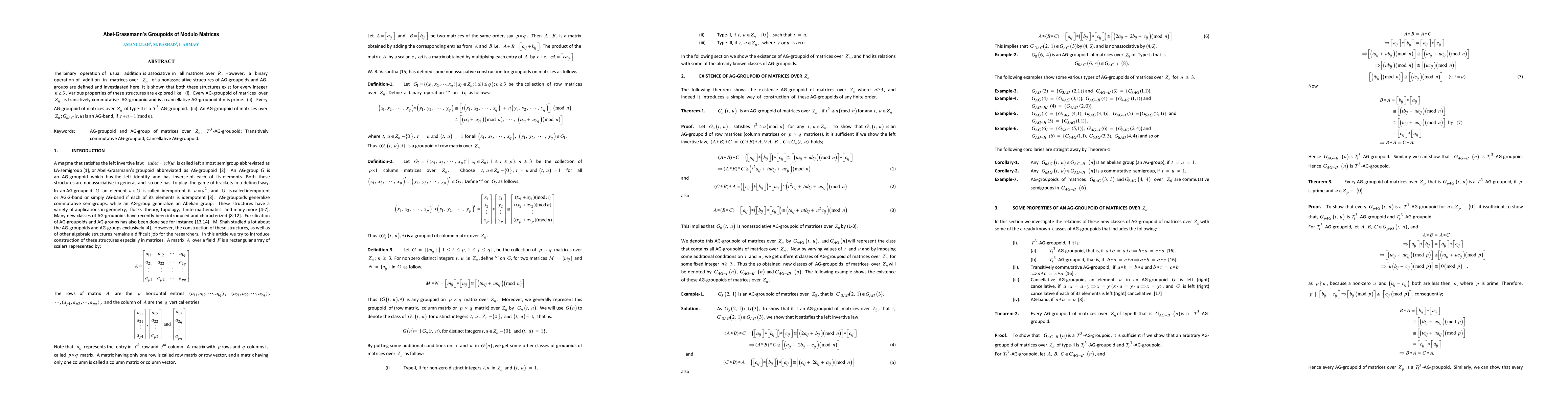 This paper introduces nonassociative binary operations in matrices over modulo integers Zn, forming Matrix AG-groupoids and Matrix AG-groups. It demonstrates the existence of these structures for every integer n ≥ 3 and explores their properties, including transitivity, commutativity, and AG-band characteristics.