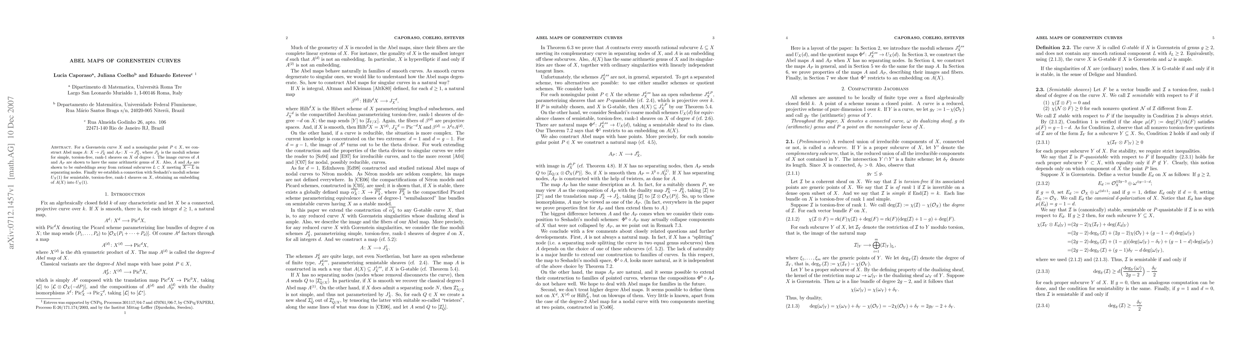 The paper constructs Abel maps A and A_P for Gorenstein curves X, demonstrating properties of their image curves and connections with Seshadri's moduli scheme U_X(1).
