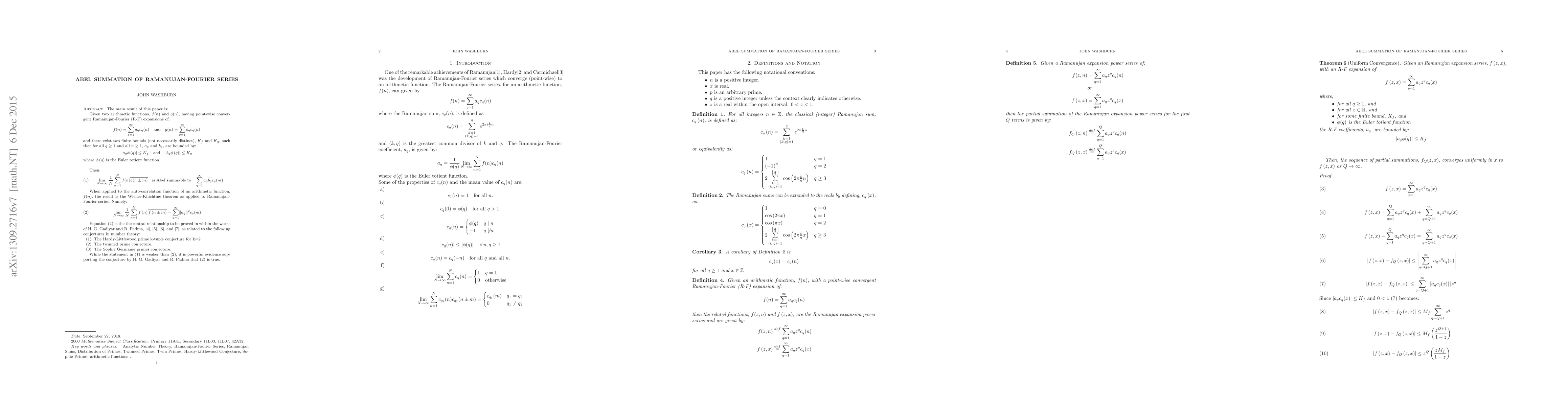 The paper demonstrates that Abel summation can be applied to Ramanujan-Fourier series, proving a weak Wiener-Khinchin formula for arithmetic functions, and shows that convolutions of such functions yield results based on their Ramanujan-Fourier coefficients.