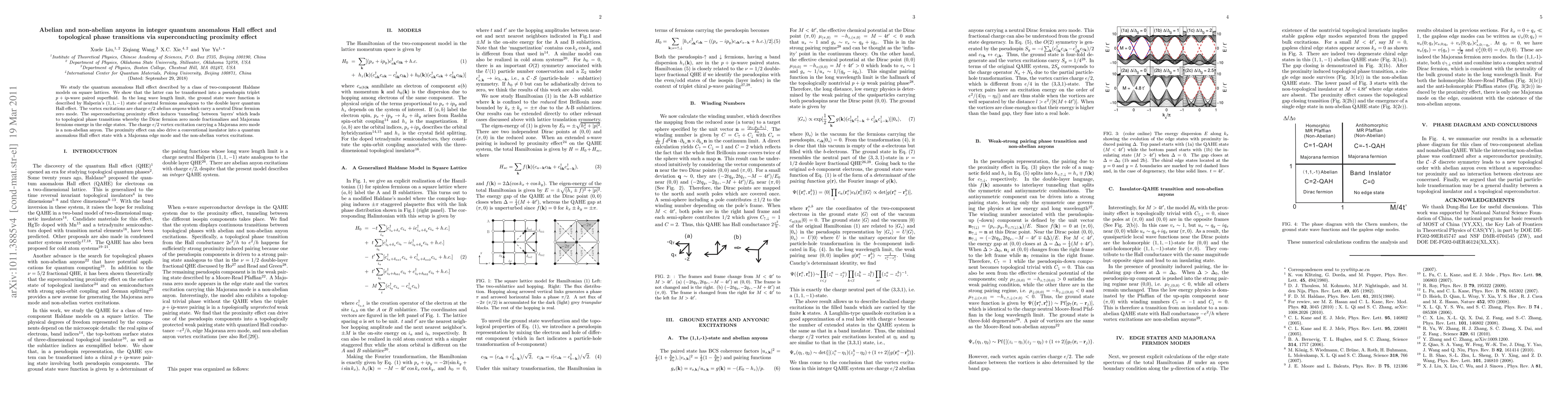 This paper investigates the quantum anomalous Hall effect in Haldane models on square lattices, revealing the emergence of abelian anyons and demonstrating how superconducting proximity effects induce topological phase transitions, resulting in Majorana fermions and non-abelian anyons.