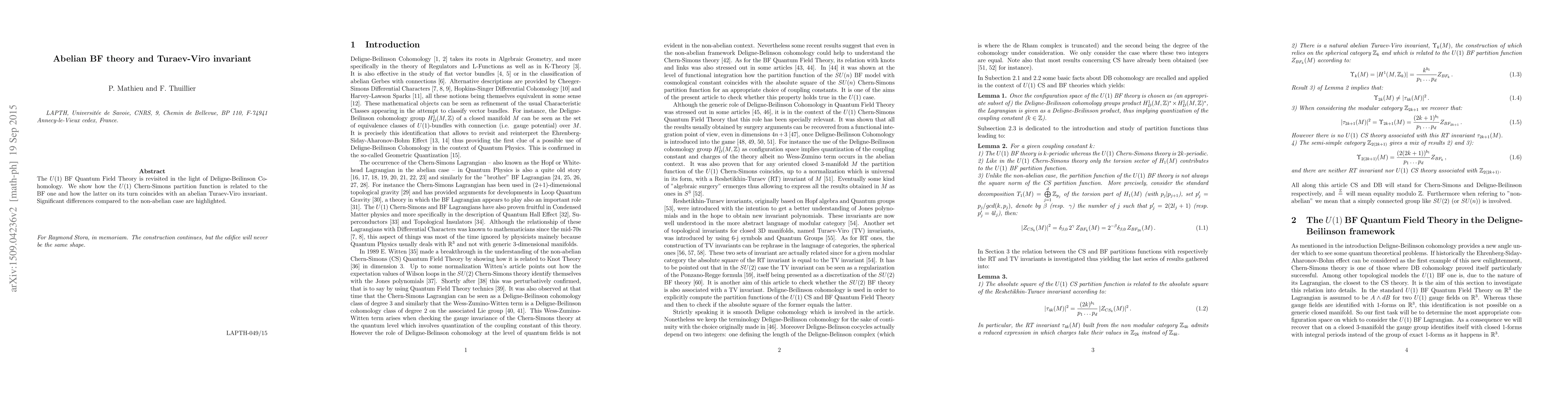 The U(1) BF Quantum Field Theory is revisited in the light of Deligne-Beilinson Cohomology. We show how the U(1) Chern-Simons partition function is related to the BF one and how the latter on its turn coincides with an abelian Turaev-Viro invariant. Significant differences compared to the non-abelian case are highlighted.